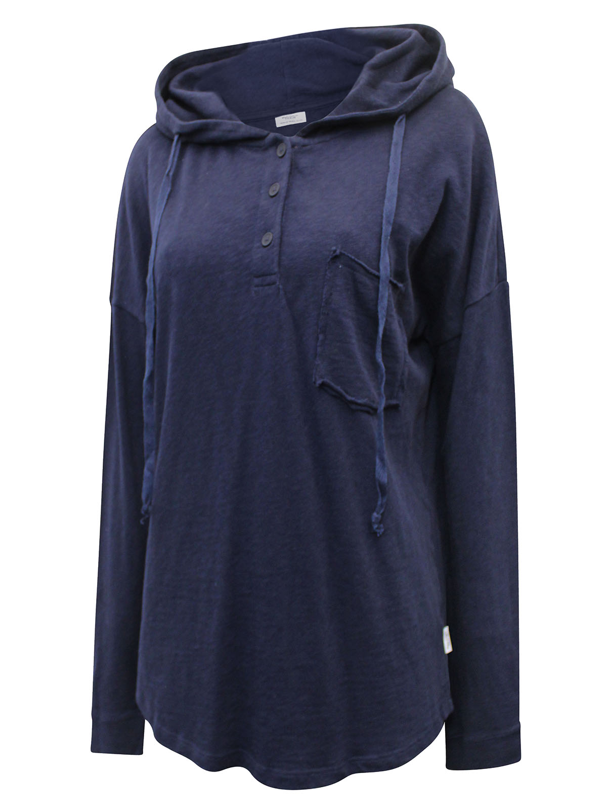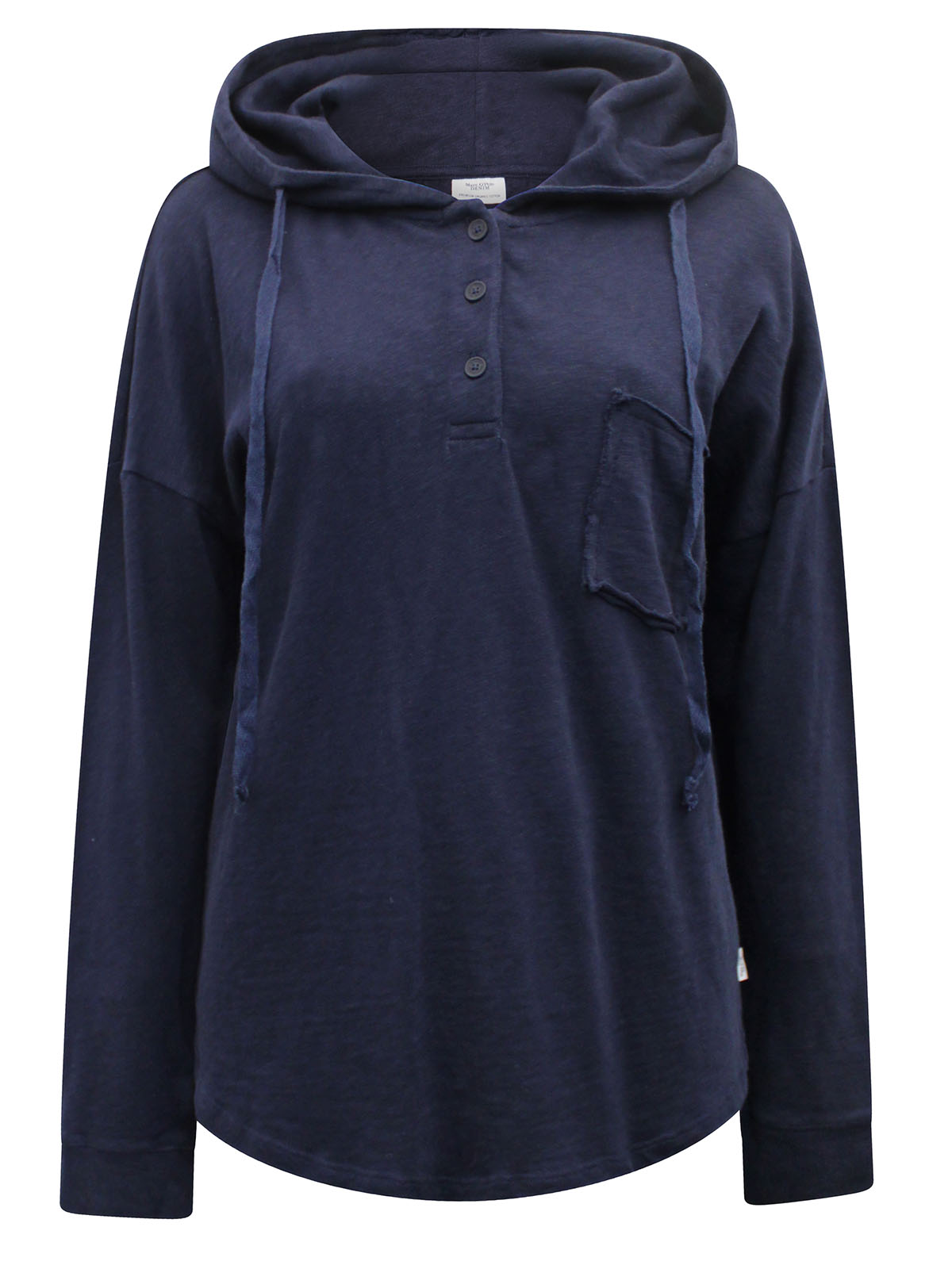 This hooded top is that perfect lightweight layer for in between seasons. It’s made from a cotton fabric that’s beautifully soft and breathable. Leaning into the off-duty vibe with long sleeves, a chest pocket and relaxed hood. A casual staple. Length 26in.