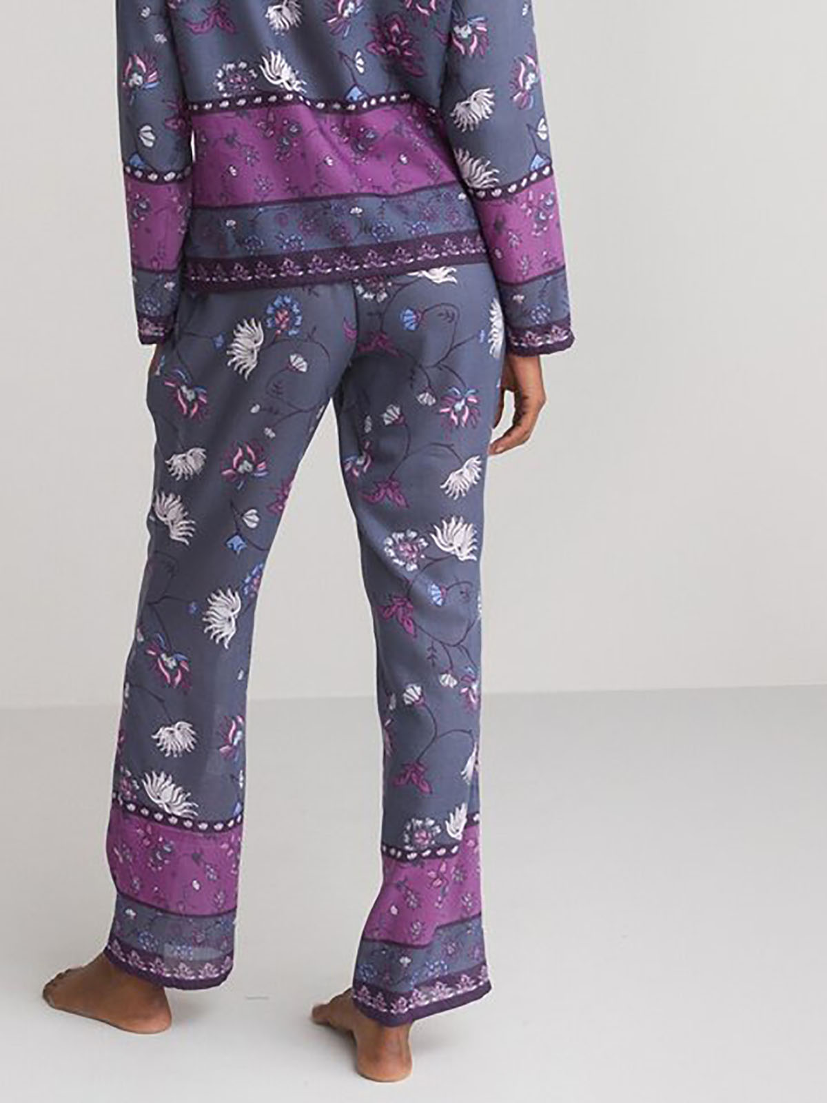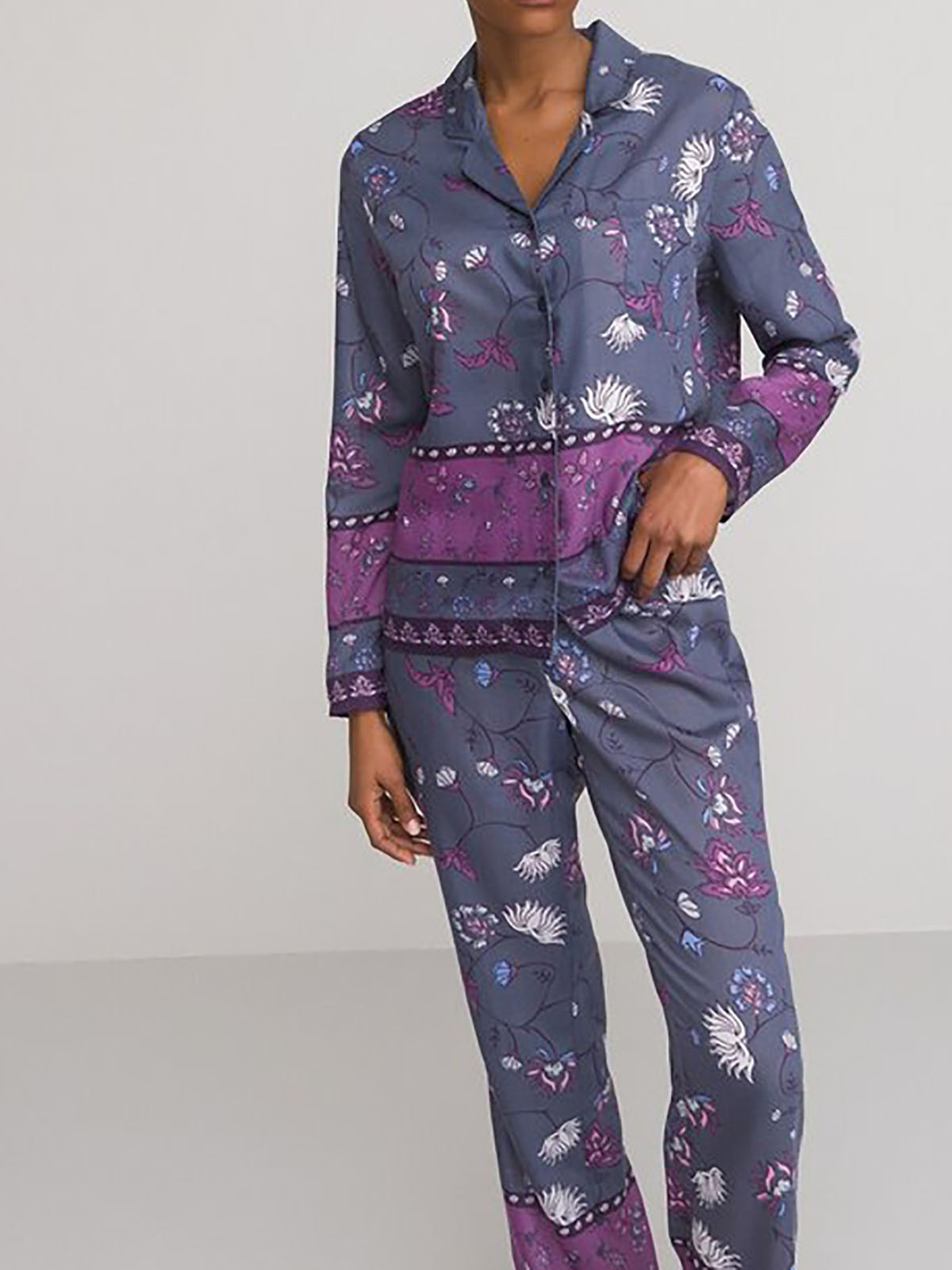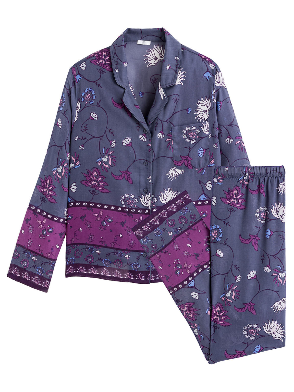 Sleep in style with this must-have pyjama set. The pyjama set features a button through long-sleeved shirt with a revere collar and a patch pocket. Matching flattering straight leg trousers with an elasticated waist. Lengths; Top 25in, Trousers 30in.