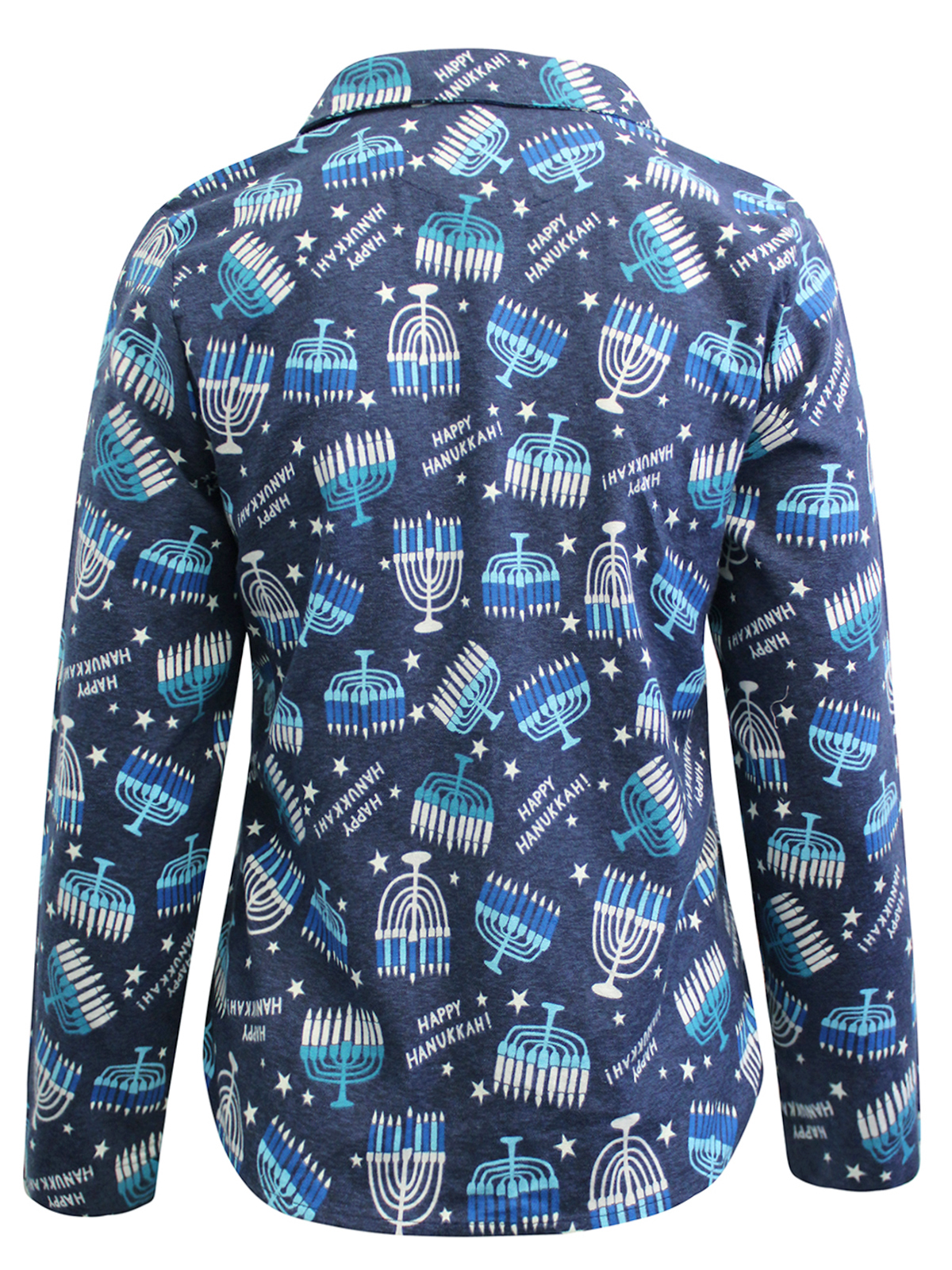 Pure Cotton Glow In The Dark Happy Hanukkah Flannel Pyjama Top