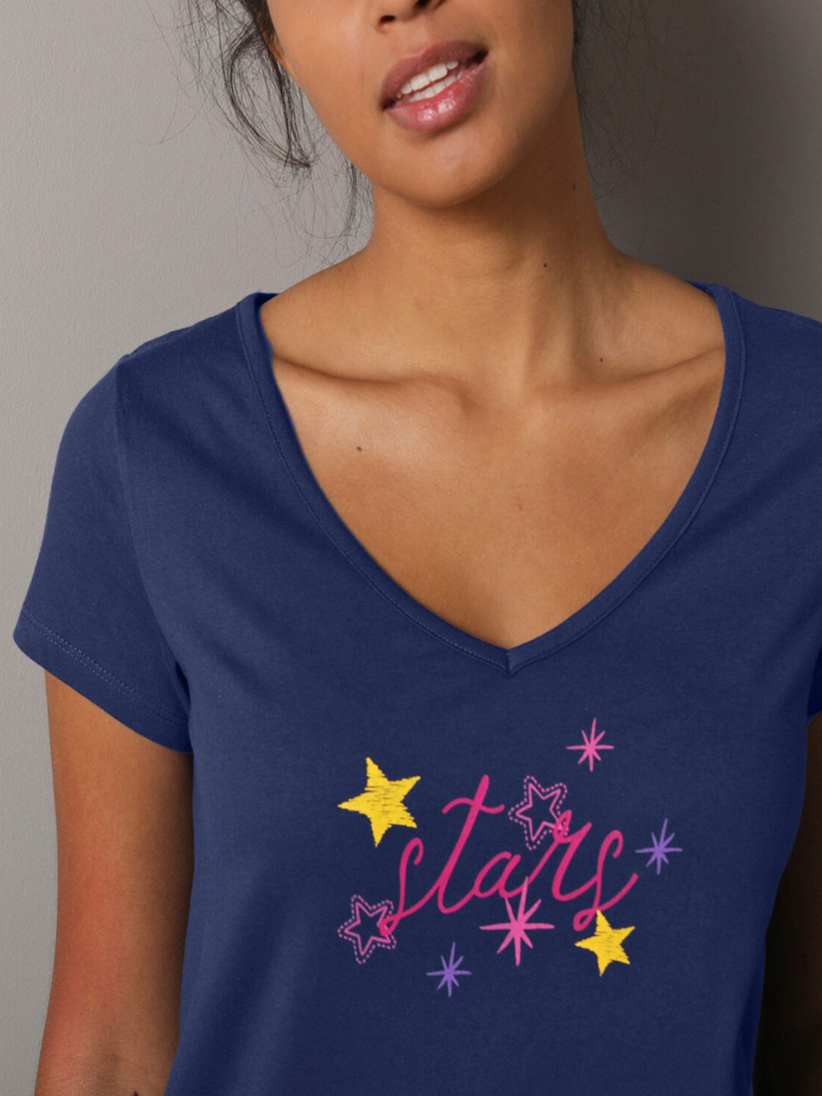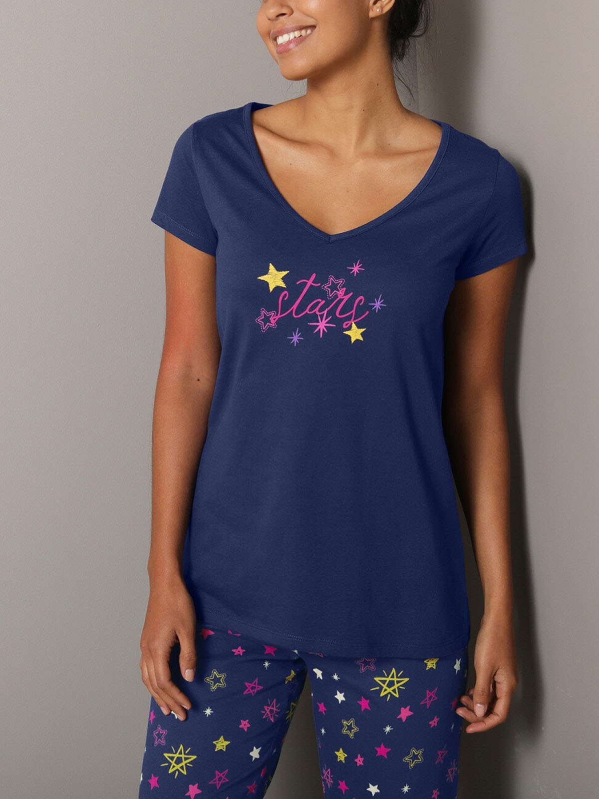 Pure Cotton 'Stars' Short Sleeve Loungewear Top