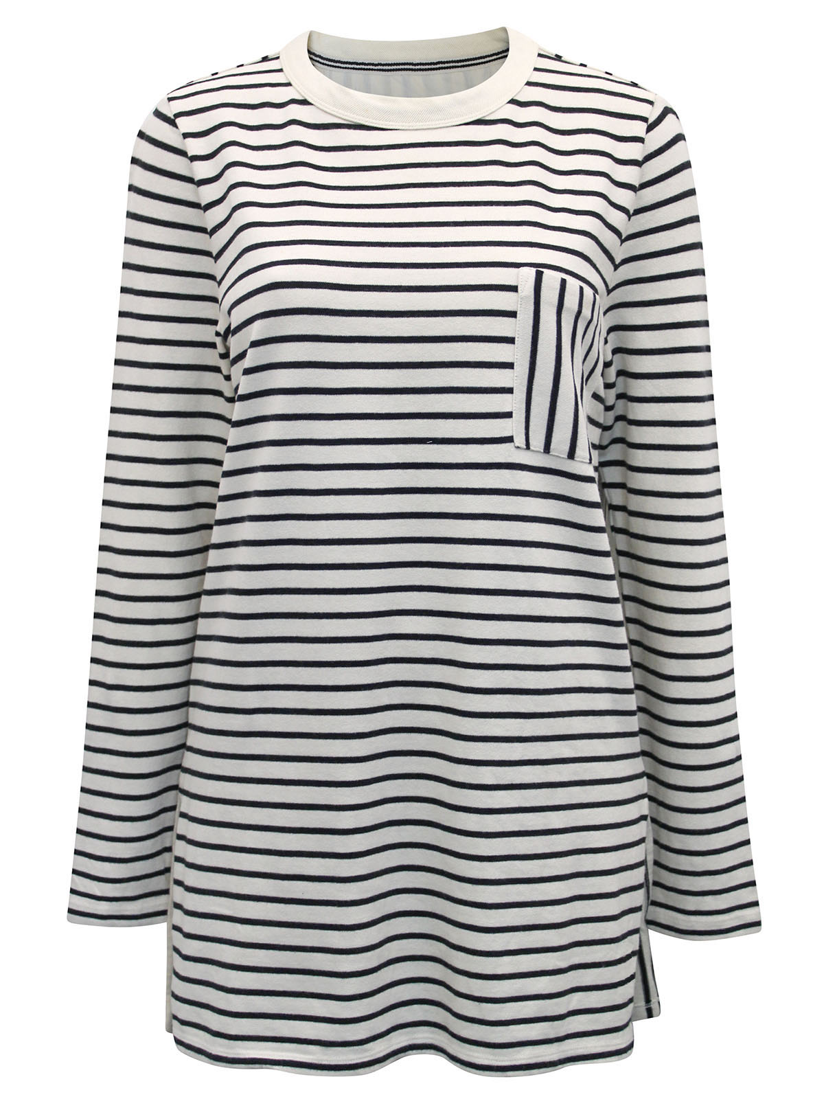 A striped top with a relaxed feel made from a soft cotton fabric. With side splits and a rib trim around the neck, this tee is the perfect addition to your wardrobe. Length 31in.