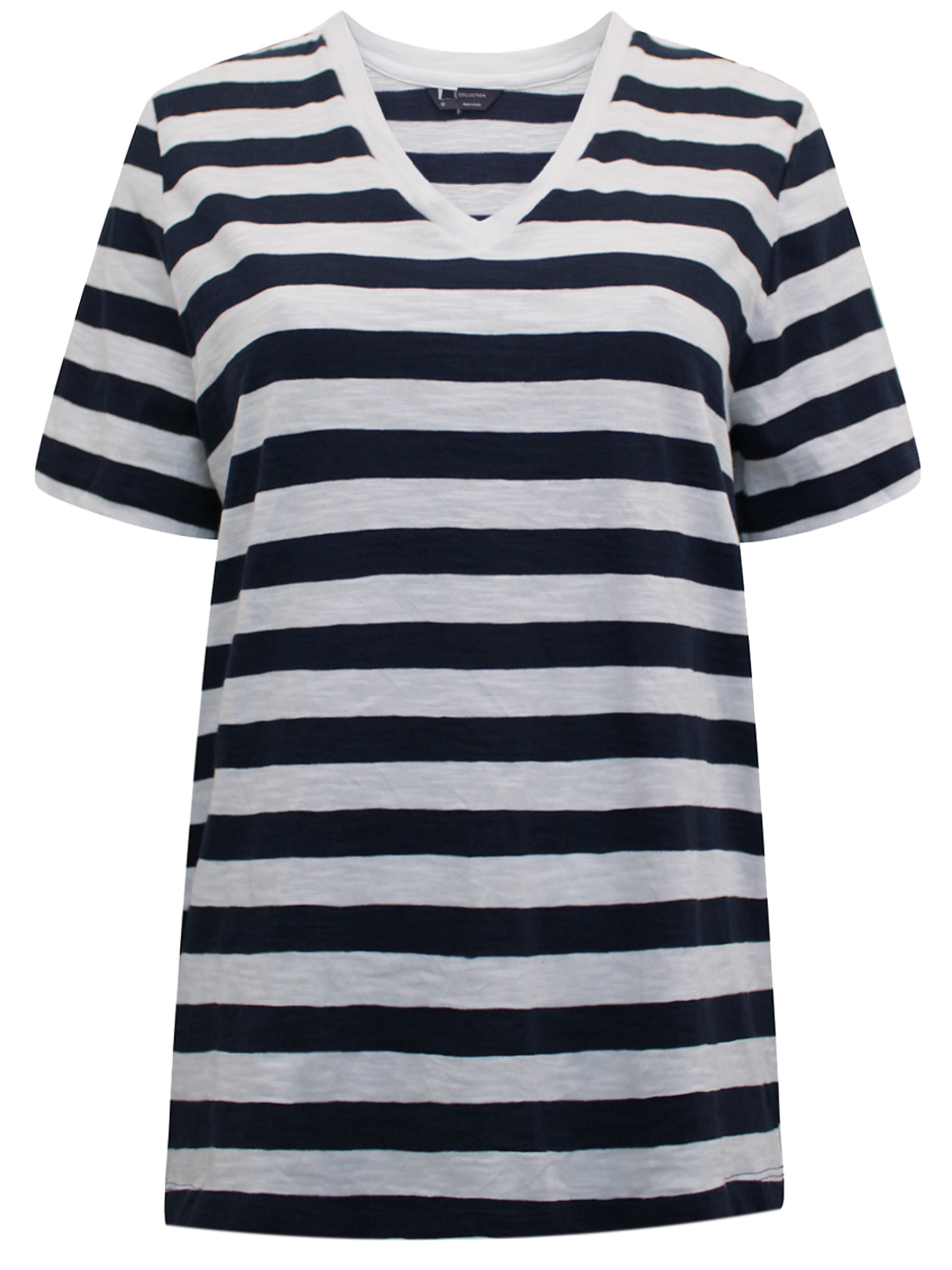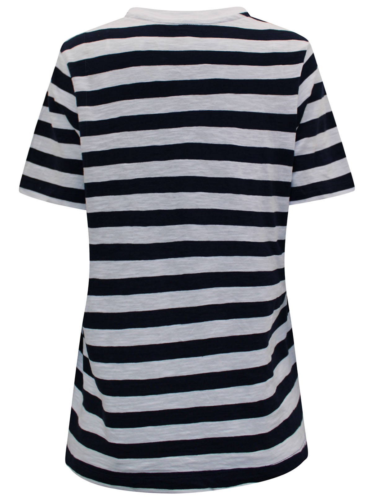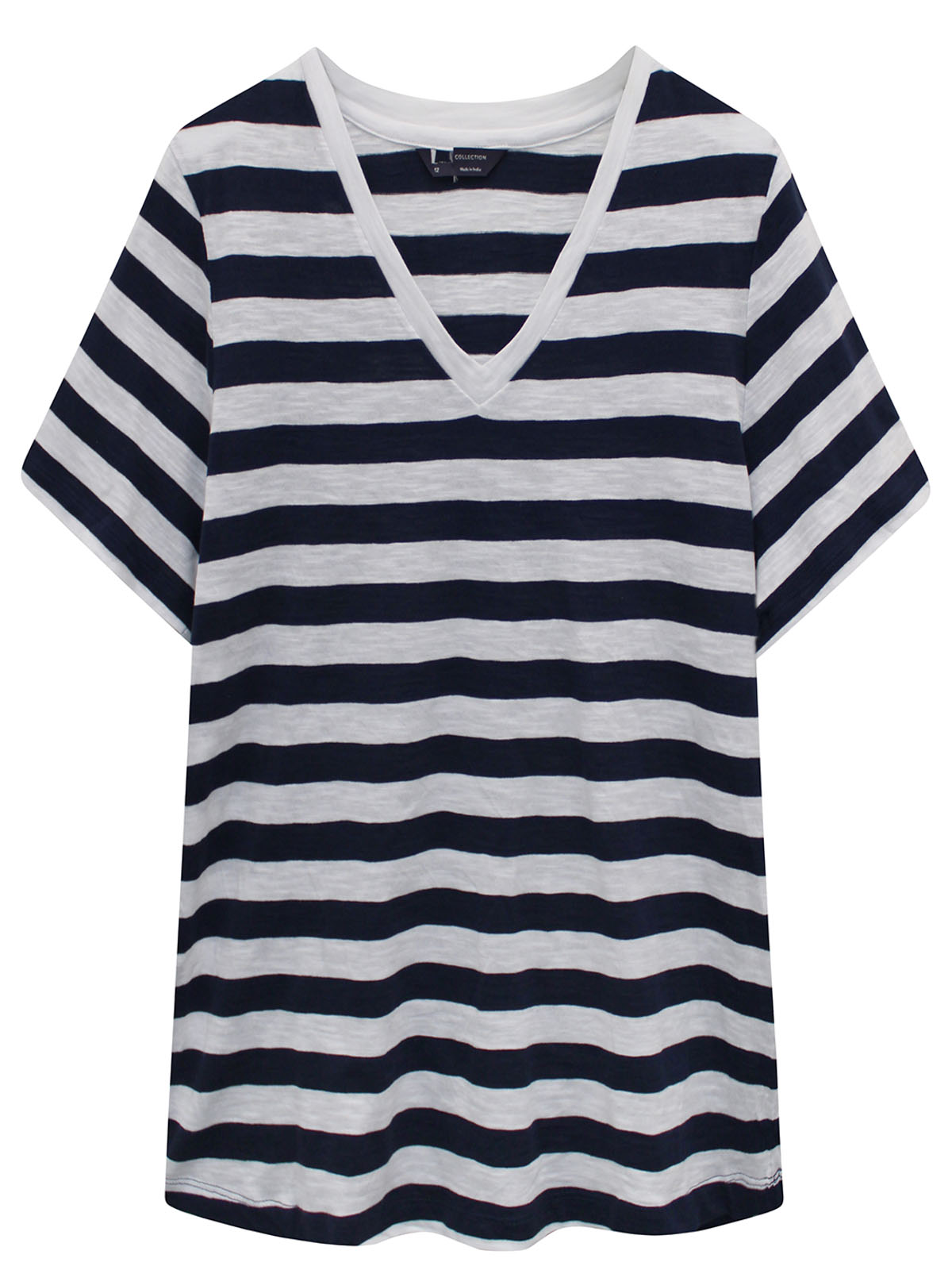 This easy-going t-shirt is designed with relaxed weekends in mind. A roomy straight fit and a V-neckline and short sleeves. Classic stripe print. Length 25in.