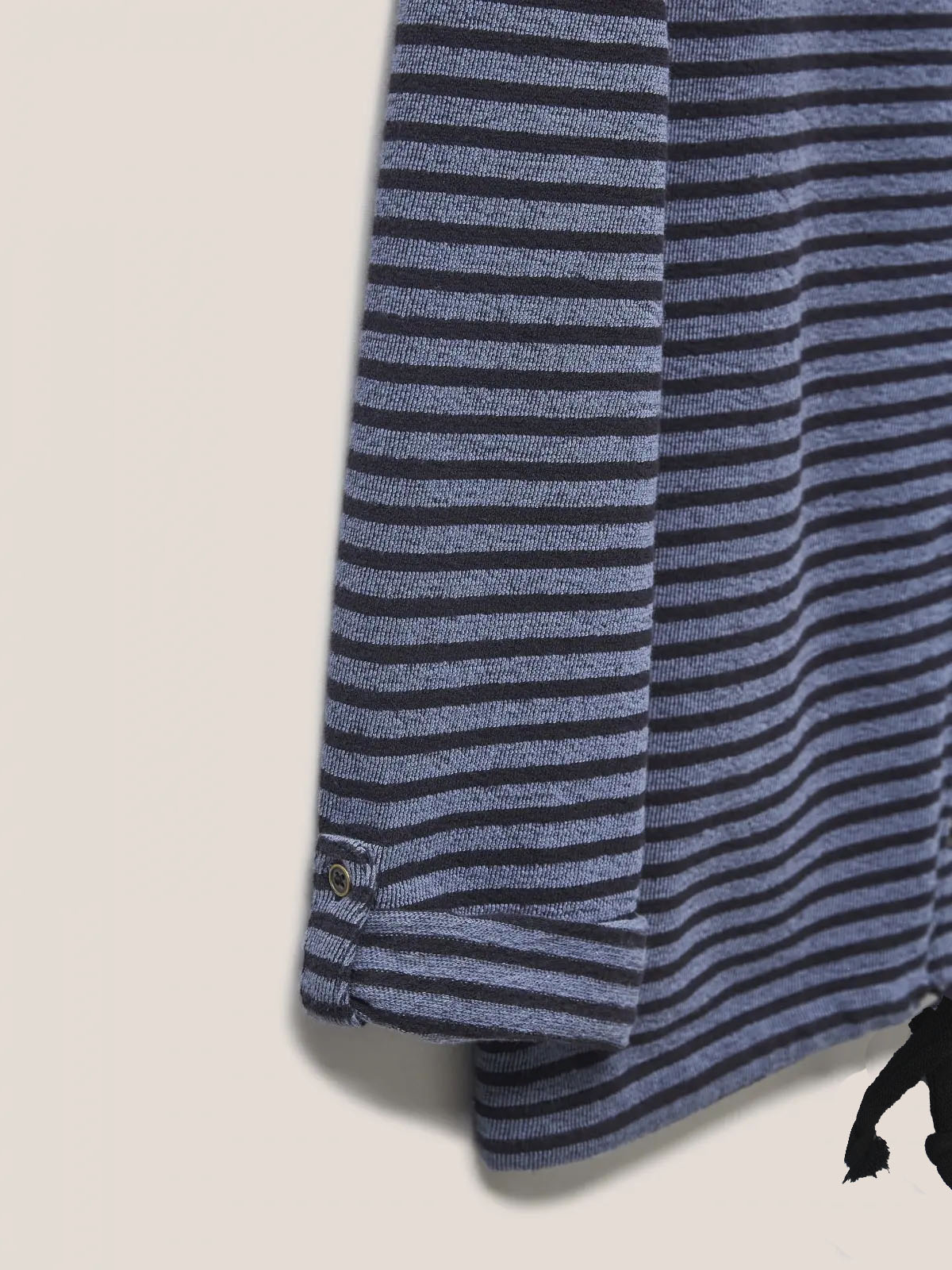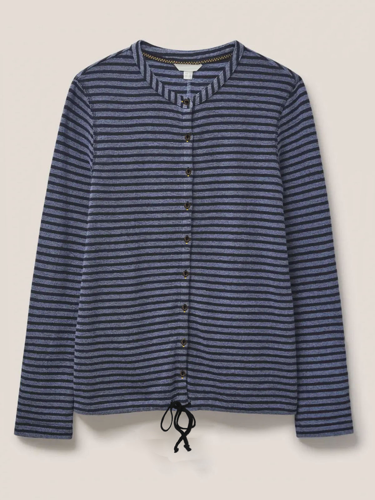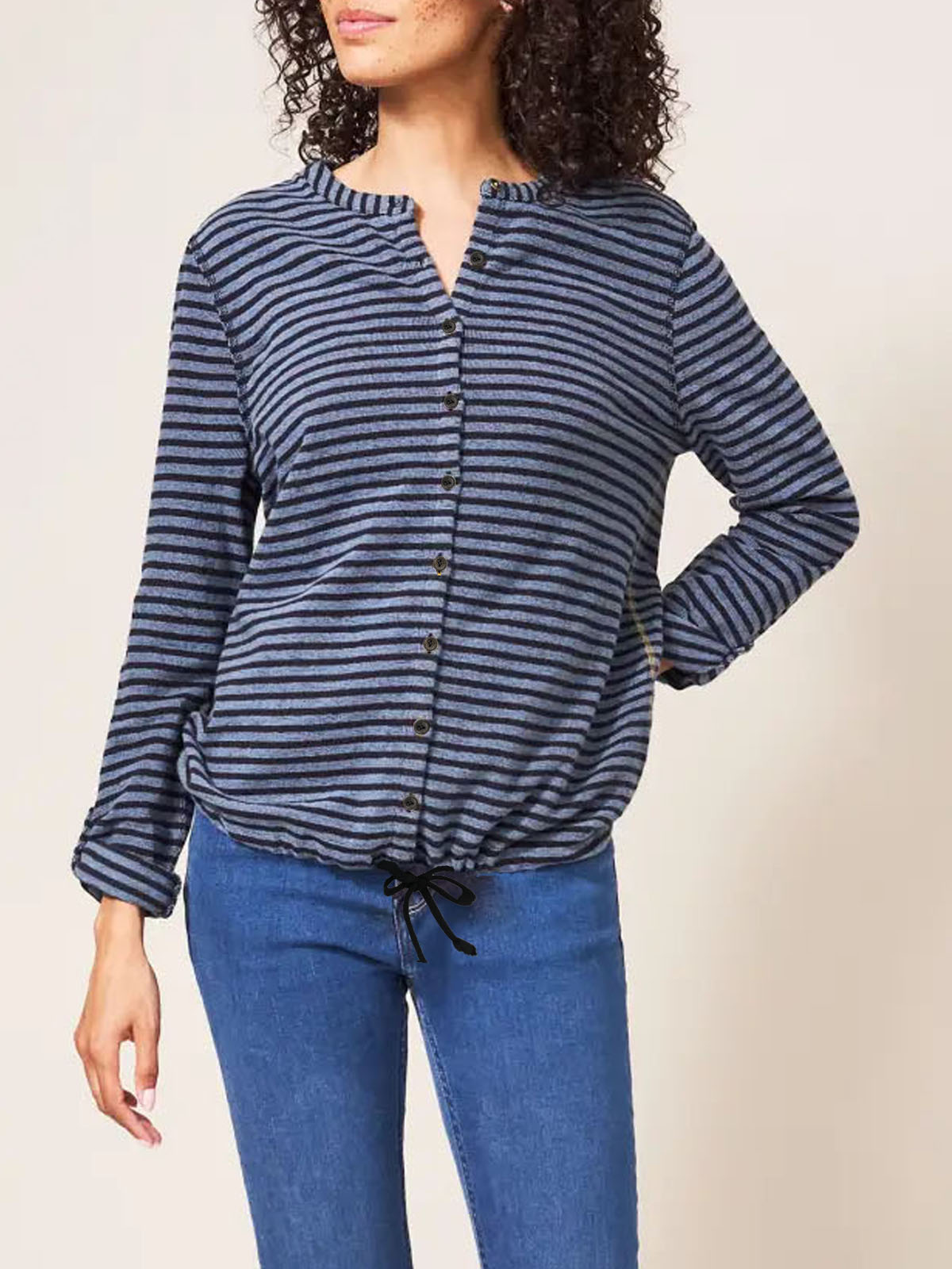 A comfy jersey shirt with a flattering tie hem. Crafted from a cotton fabric with a scoop neckline, button front and tie hem Length 25in.