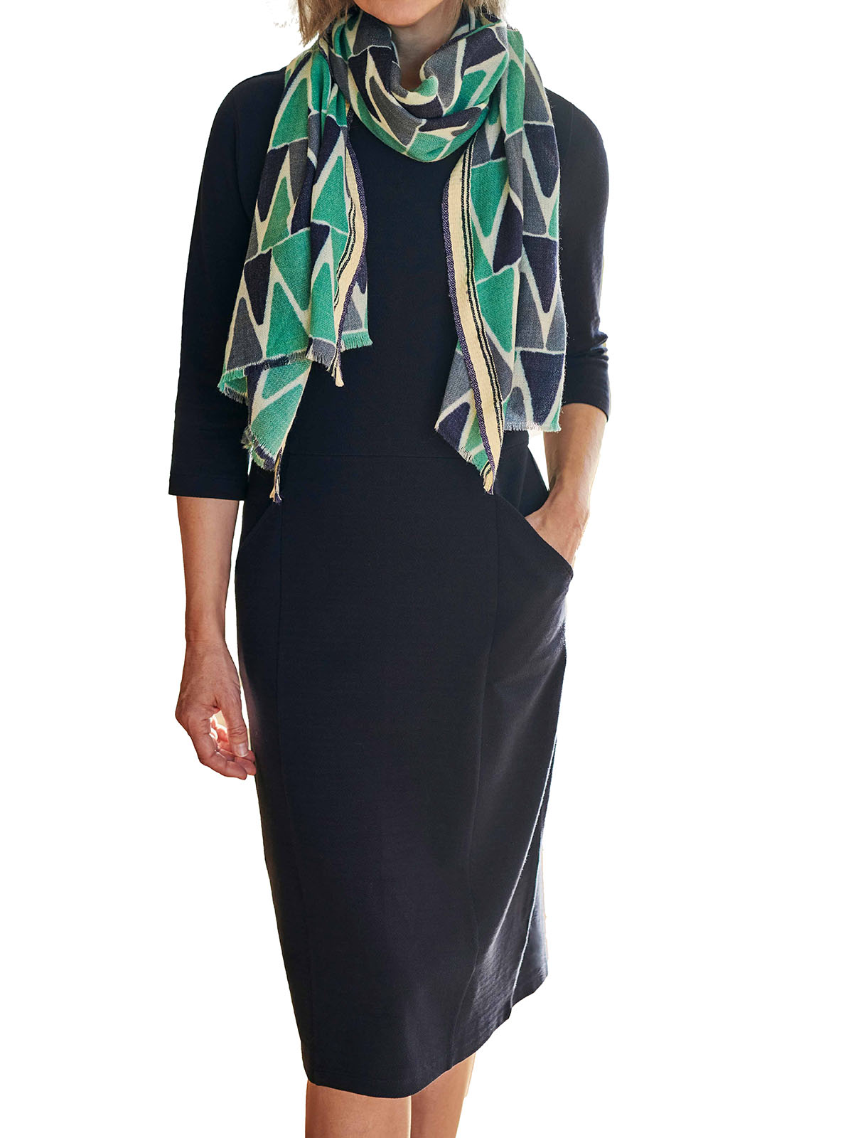 This midi dress is perfect for those days when you want to look stylish but also just want to be cosy and comfortable. With handy pockets & sleeves that cover the upper arms. Length 40in.