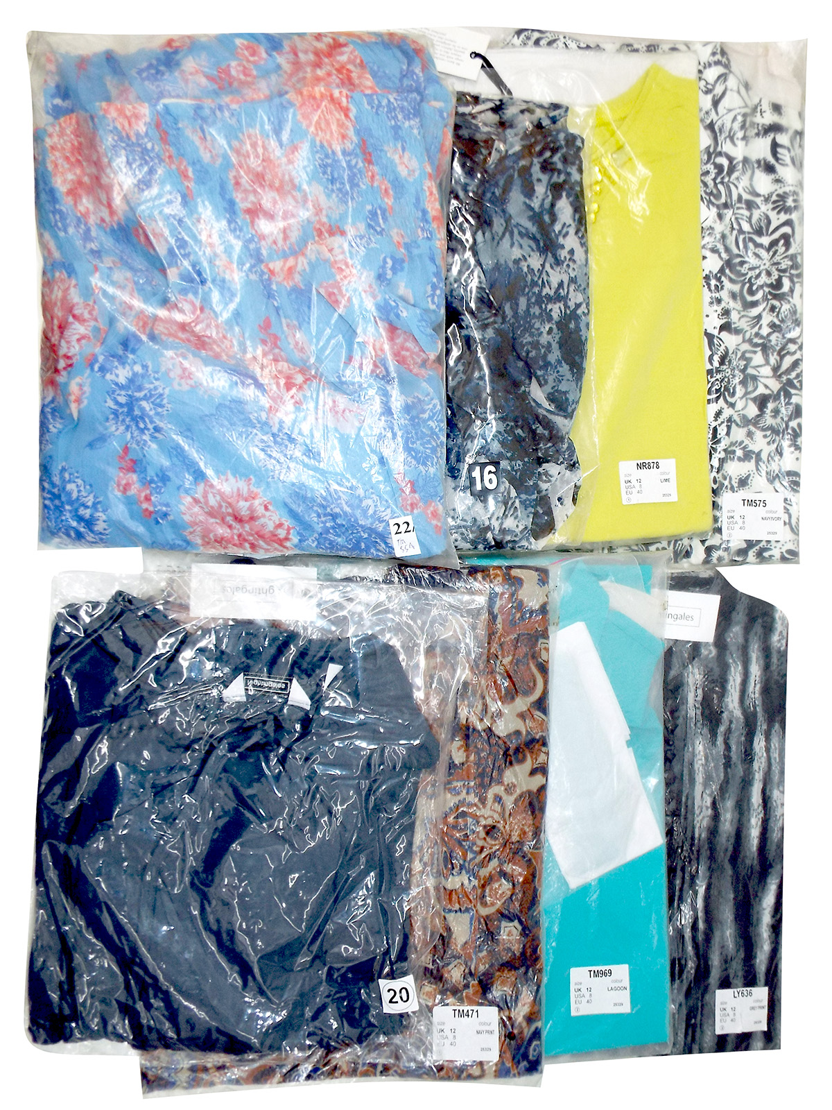 A mixed pack of ladies clothing with a variety of styles and colors and lengths. Mixed styles of tunics, tops, dresses and skirts. The pictures attached at a sample of the items in the pack.
