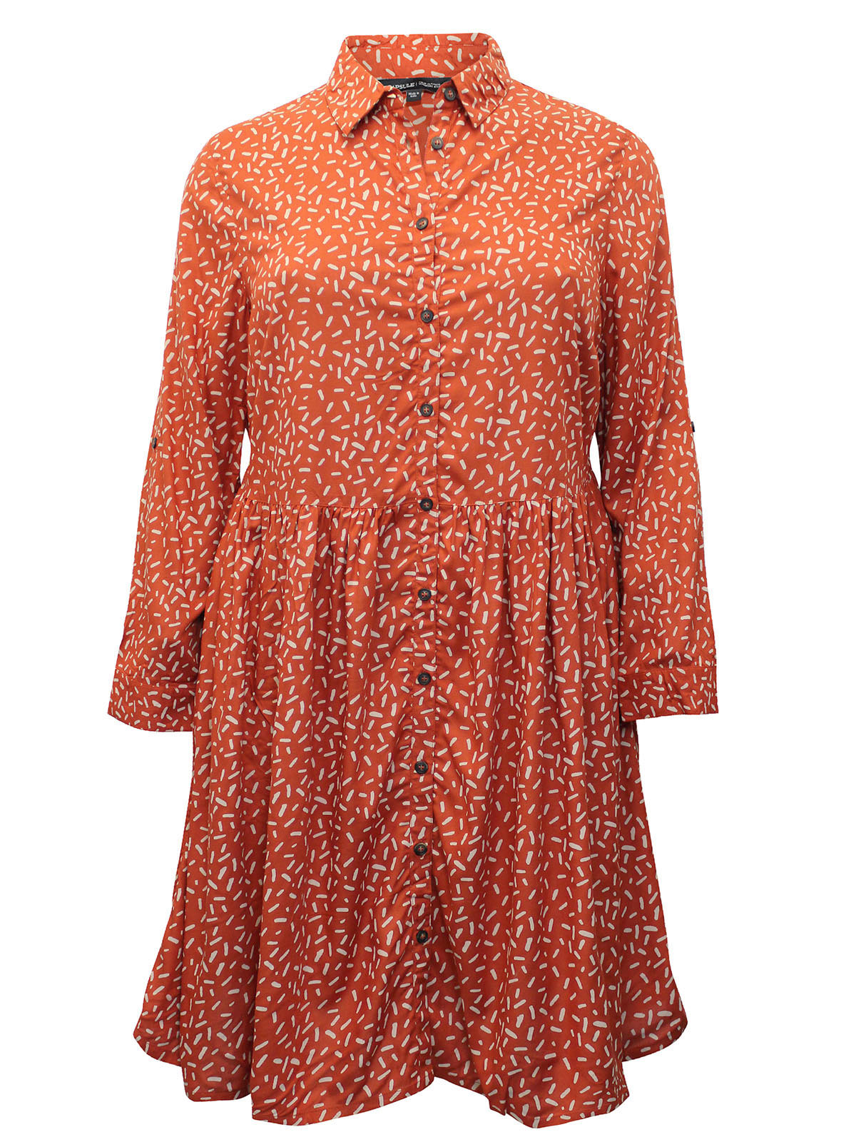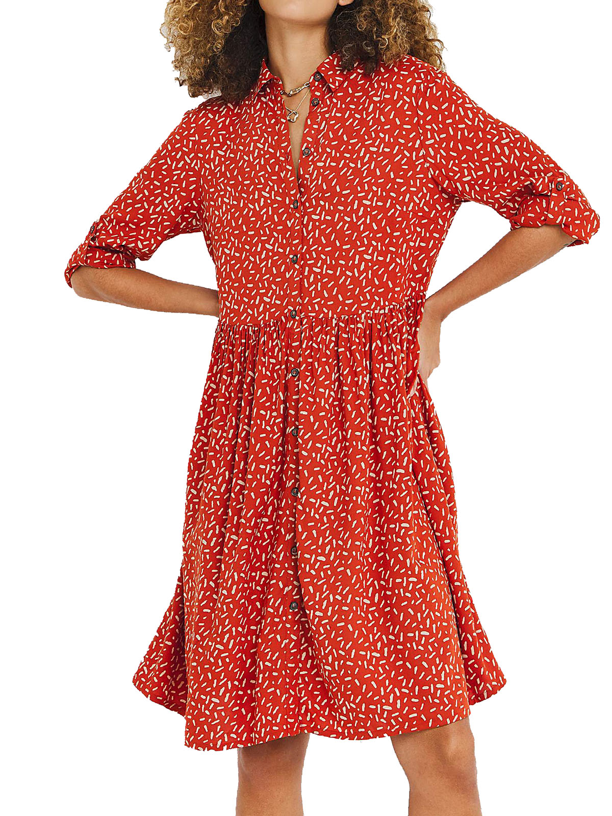 Printed Roll Sleeve Shirt Dress