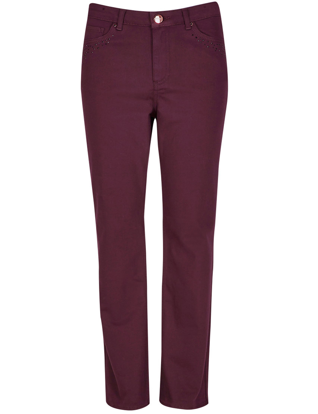 Jeans are well and truly a style staple, these jeans will fit seamlessly into your core wardrobe. On the waist with belt loops and a button and zip fastening. Pockets to the front with heatseal diamante detail. Added stretch.