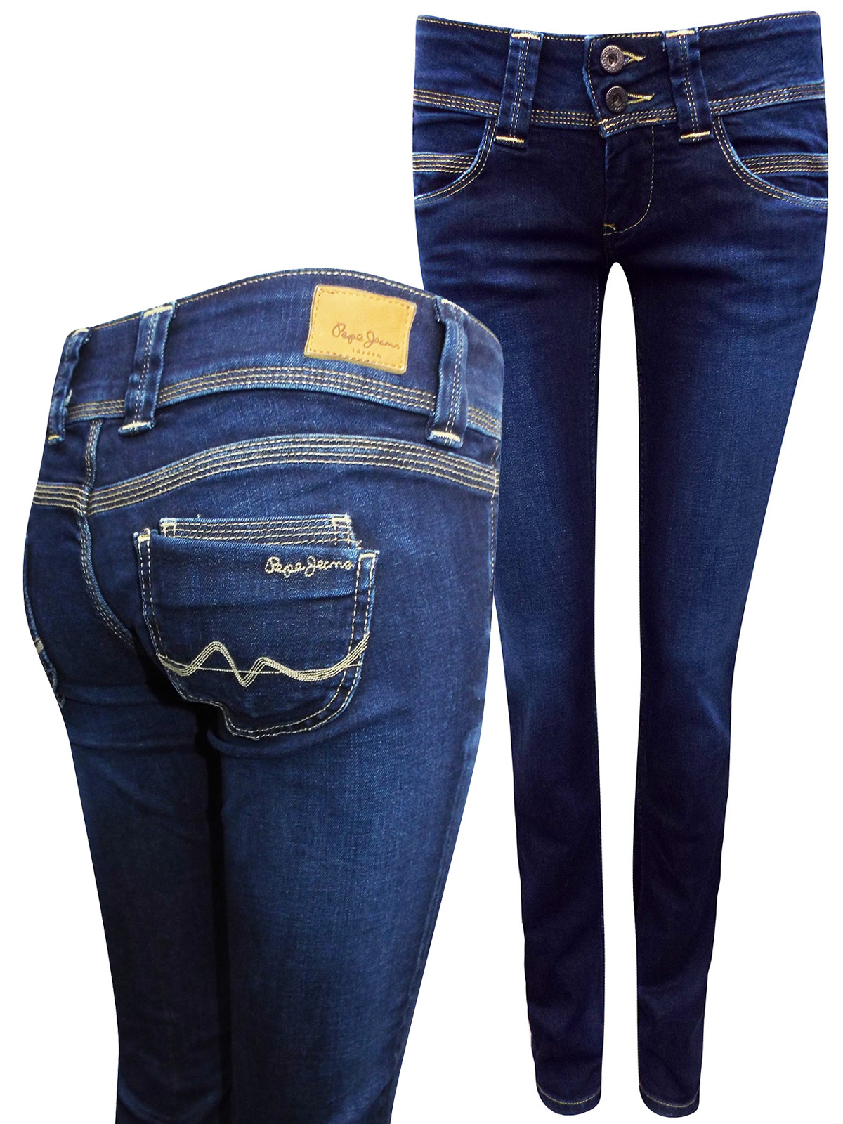 Pepe Jeans DARK-DENIM Venus Low Rise Regular Fit Straight Leg Denim Jeans - Waist Size 27 to 28 (Length 34in)