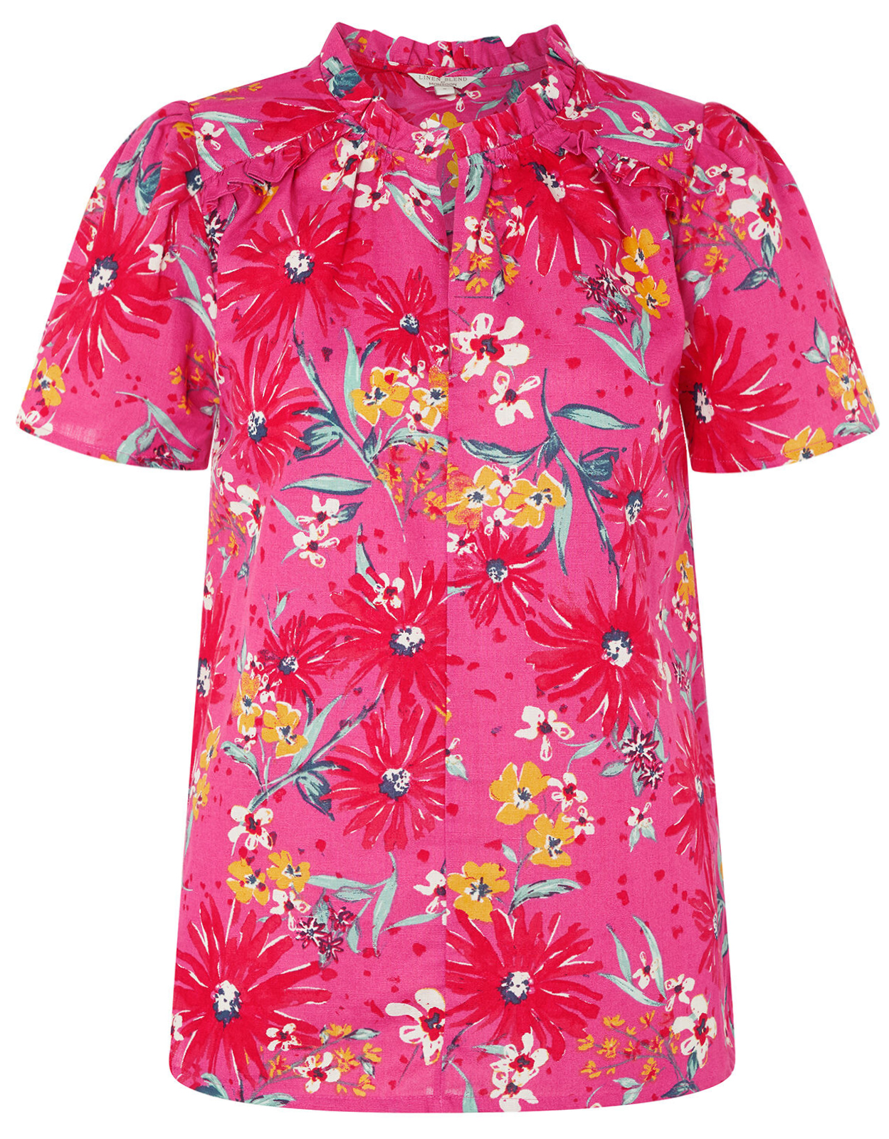 Organic Cotton Linen Blend Dhana Floral Print Frill Trim Top