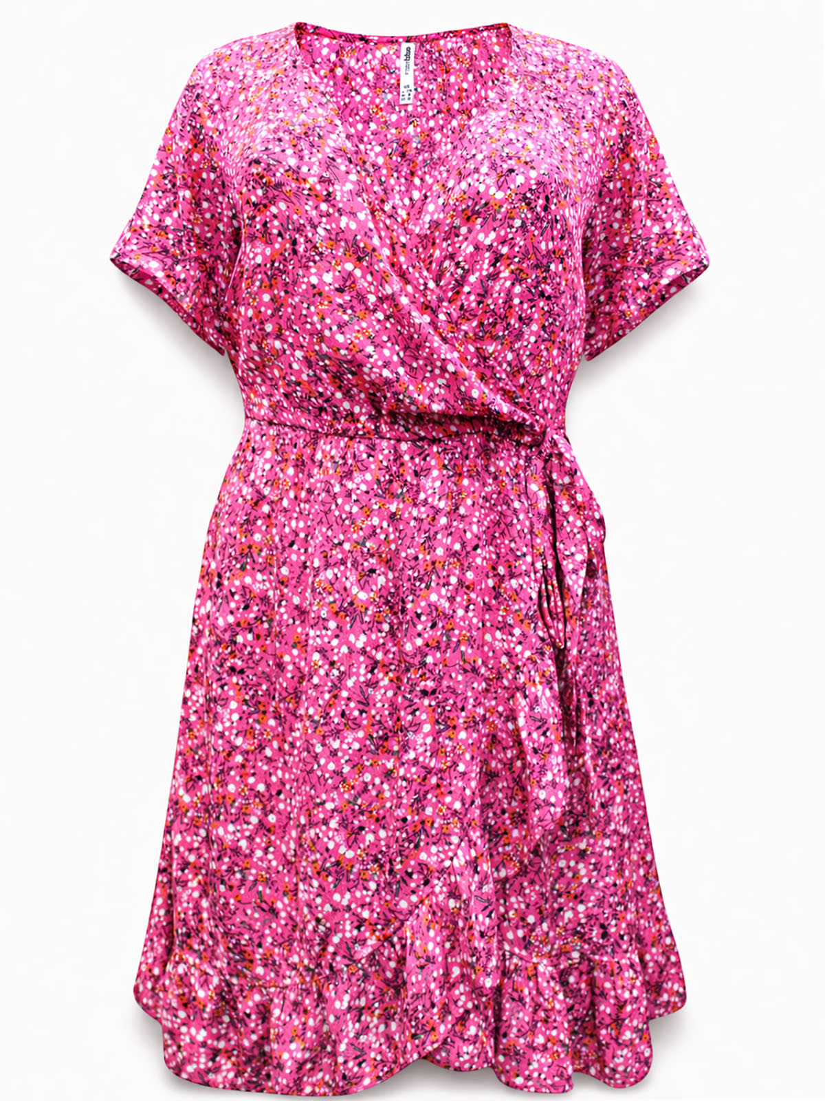 Brighten up your occasion wear with this wrap dress. Featuring a flattering wrap style, it is finished with a v-neckline and elasticated waist with tie detail to fit and flatter your curves. Length 39in.