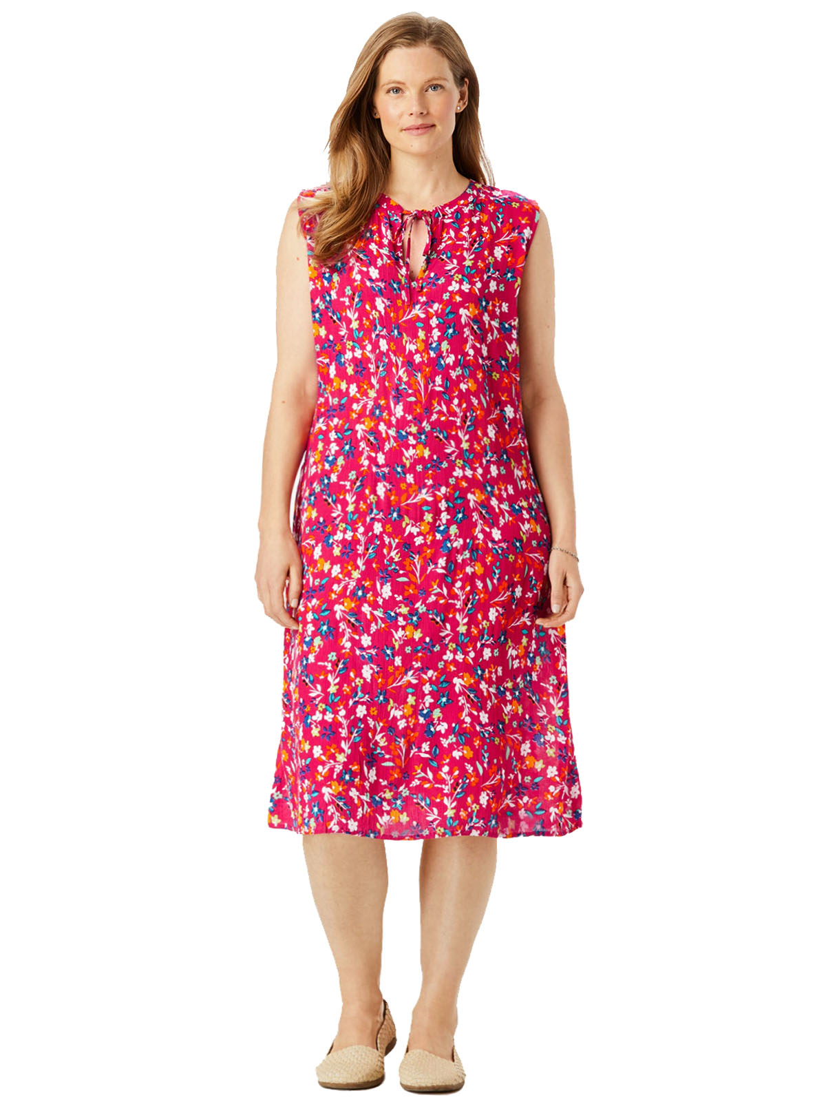 A pretty sleeveless dress in soft and flowing crinkle with a soft tie at the keyhole neckline. On-seam side pockets. Length 41in.