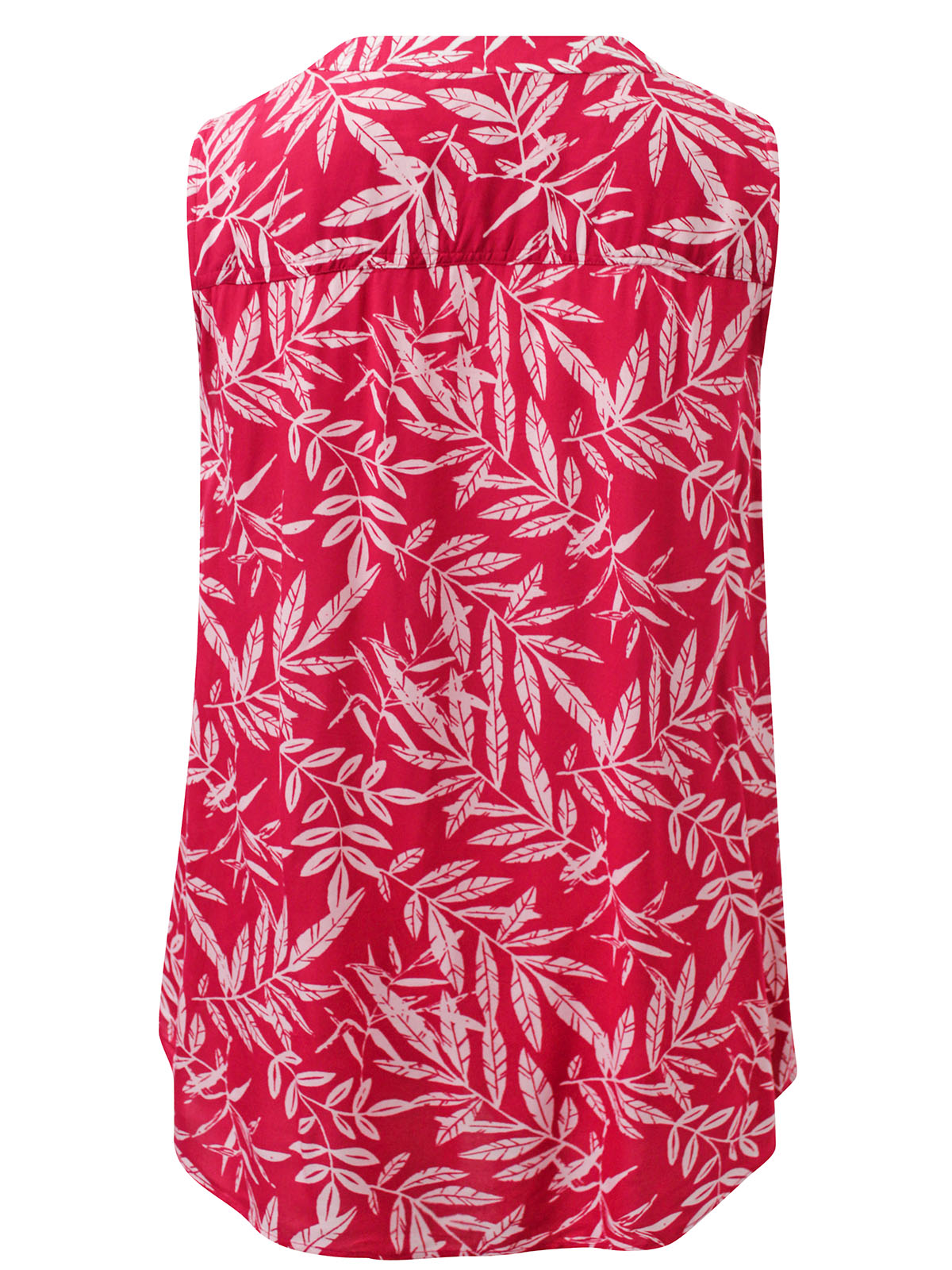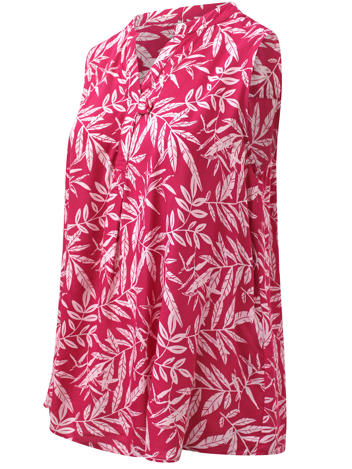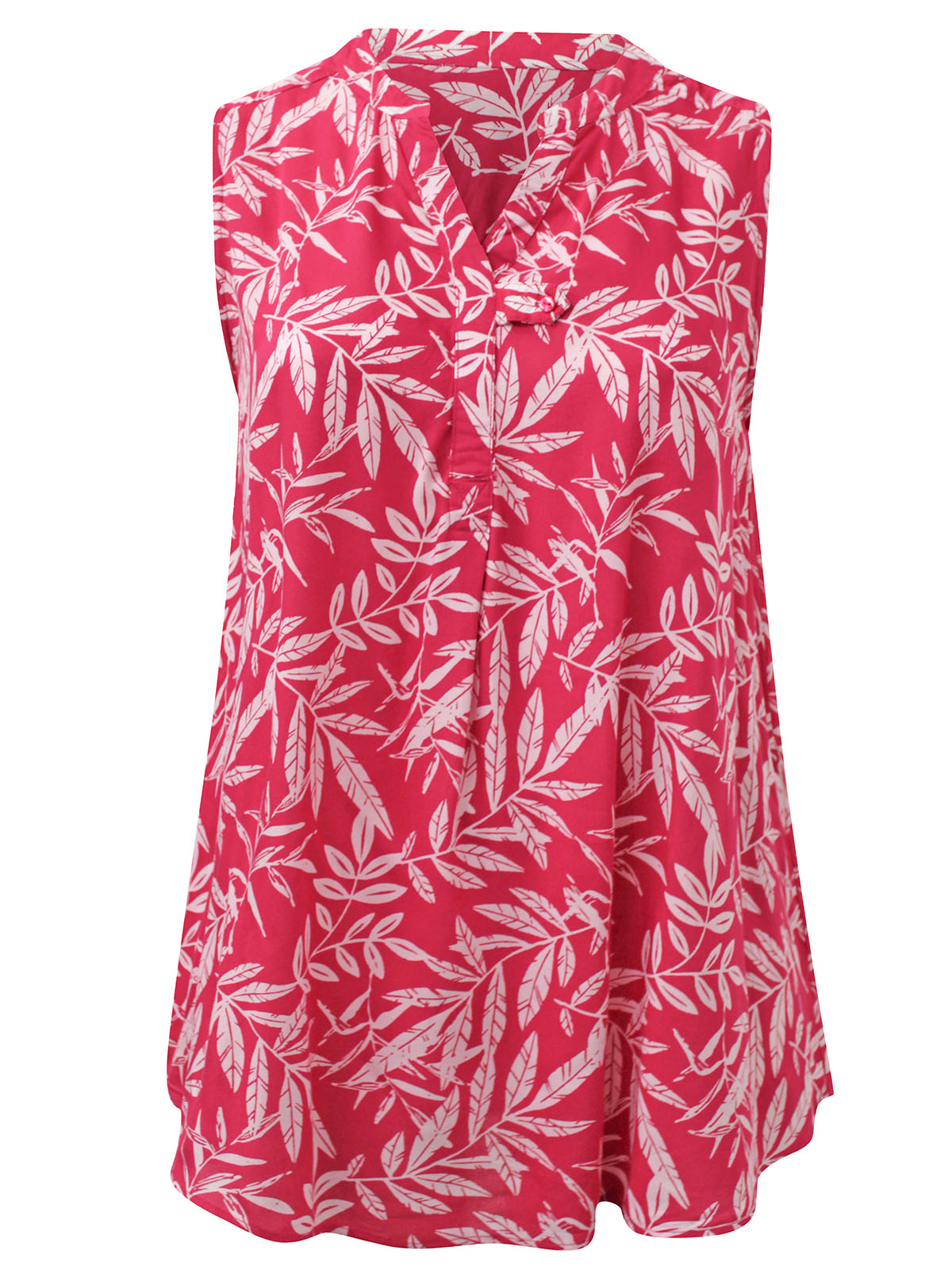 Sleeveless Tab Front Tunic - Raspberry Sorbet Leaf