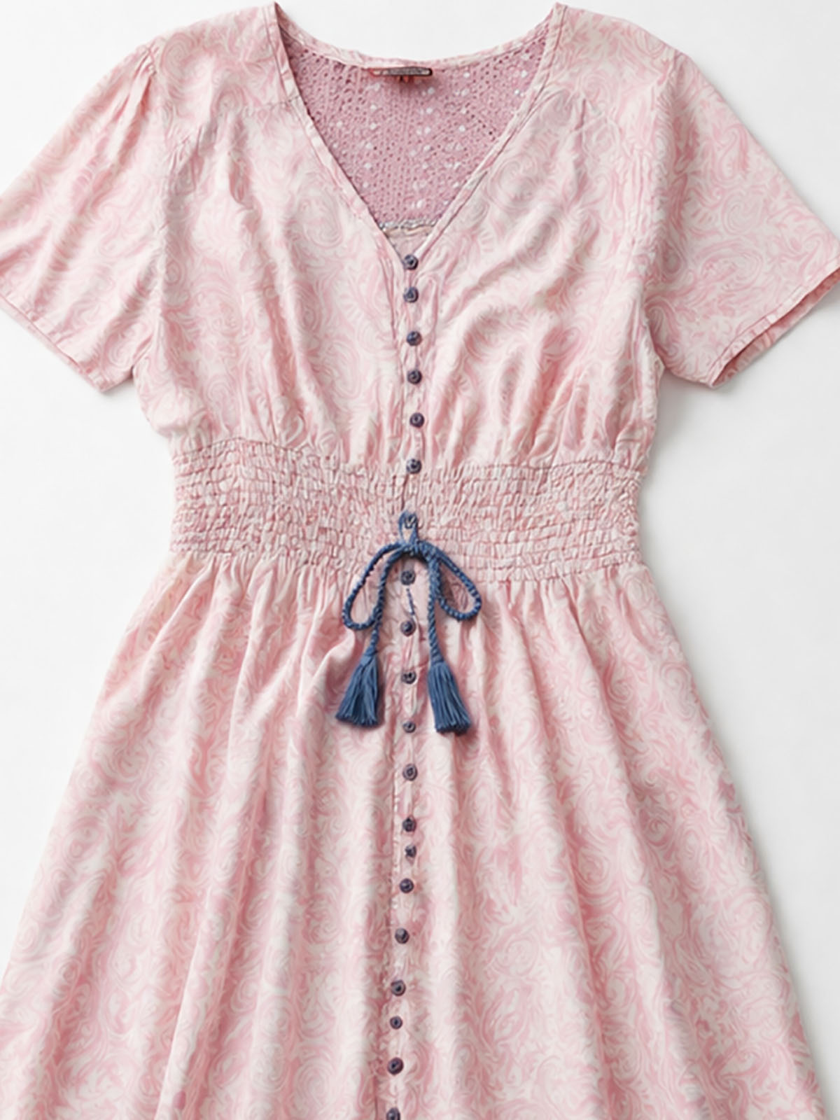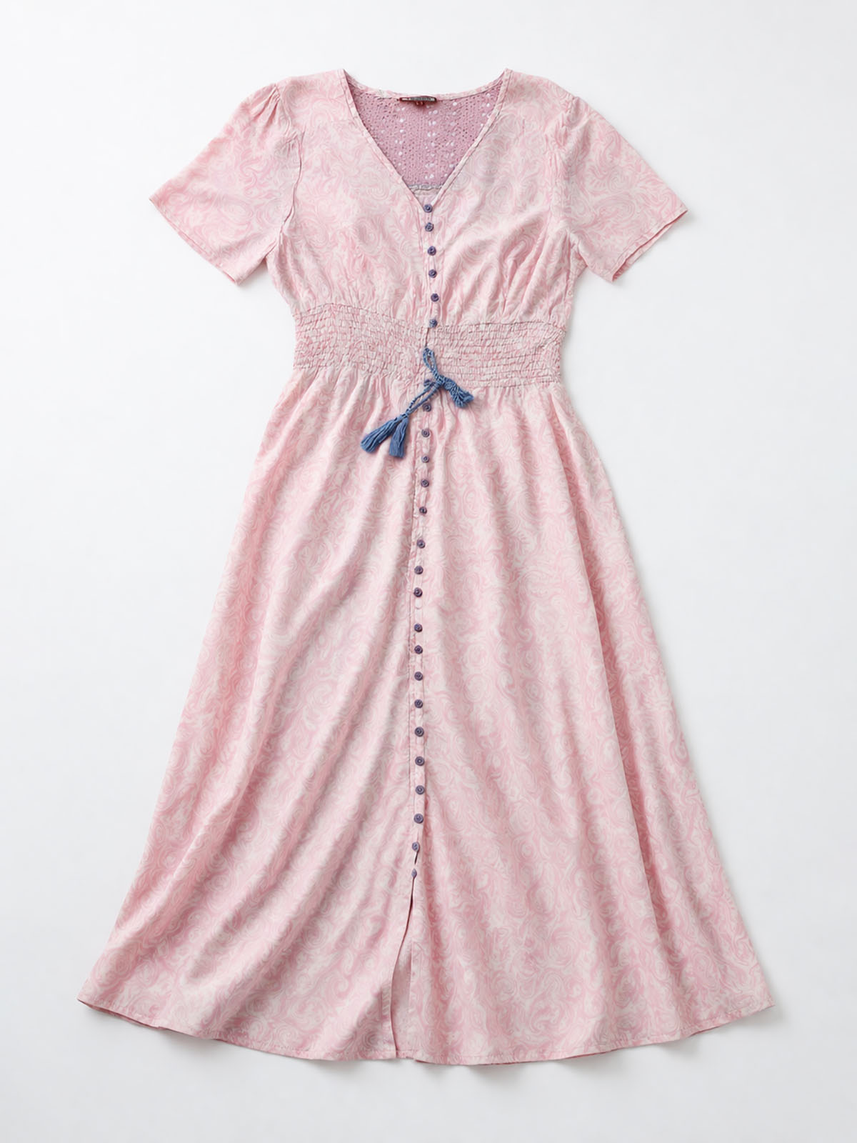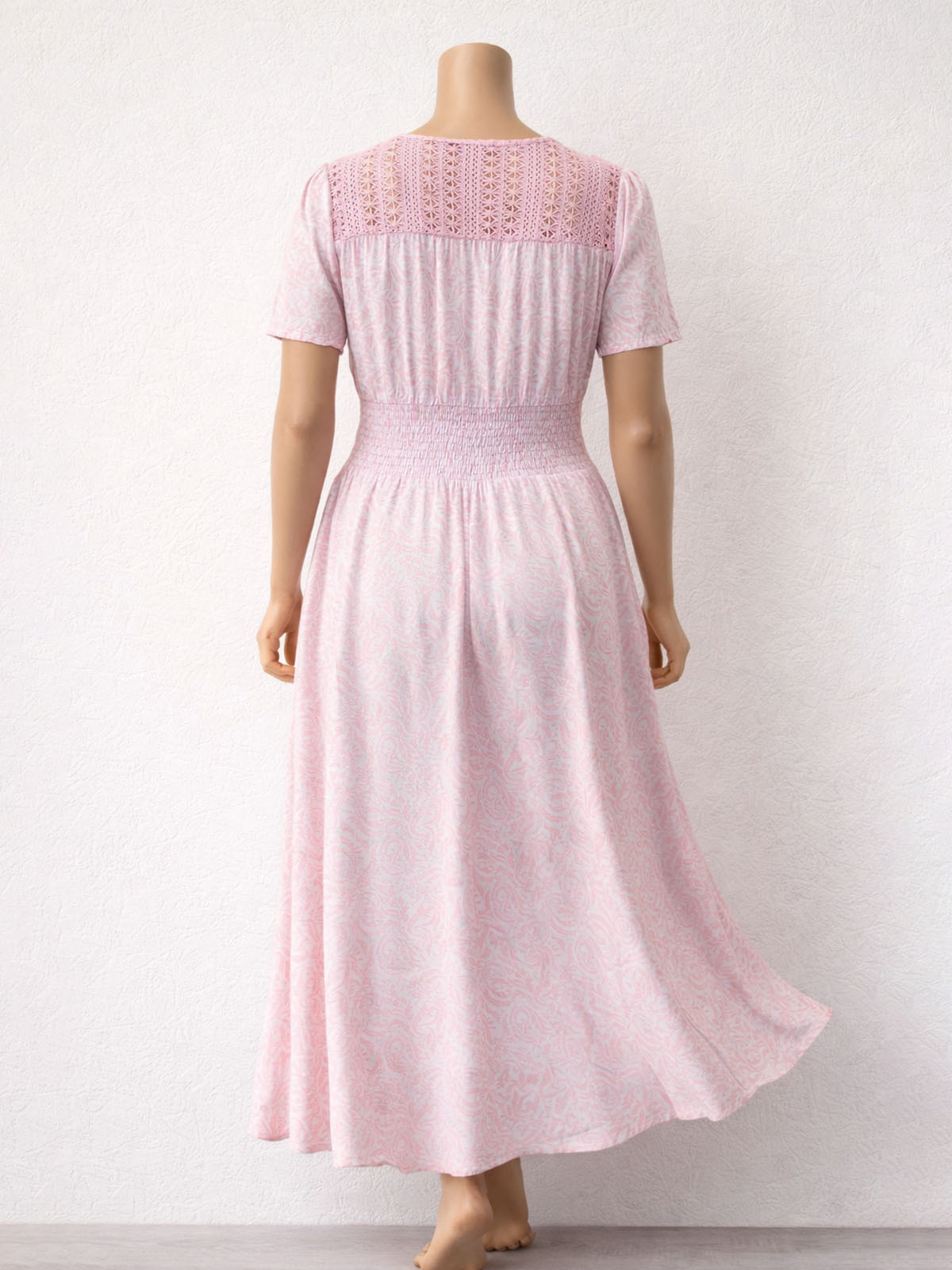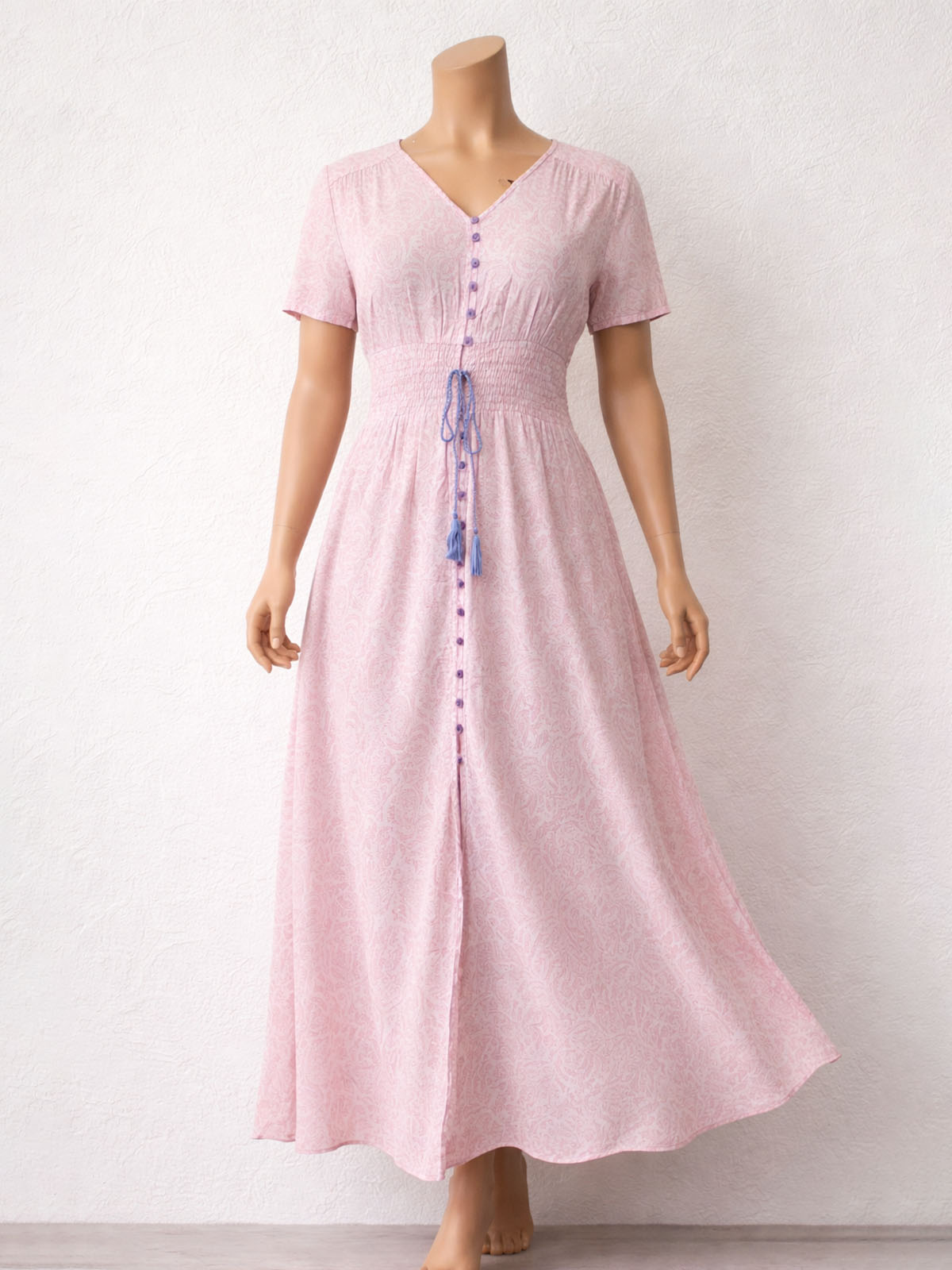 Choose this beautiful maxi dress, and it'll quickly become your new favourite summer style. It's the pretty shirring, fun tassel ties and lace at the back we know you'll love. Length 54in.