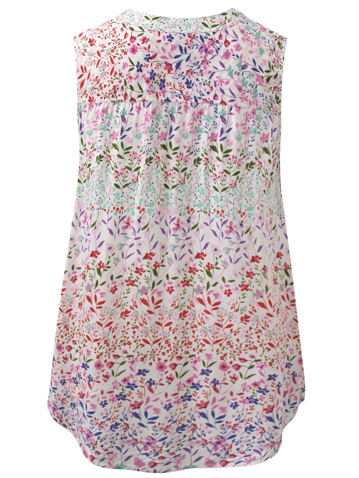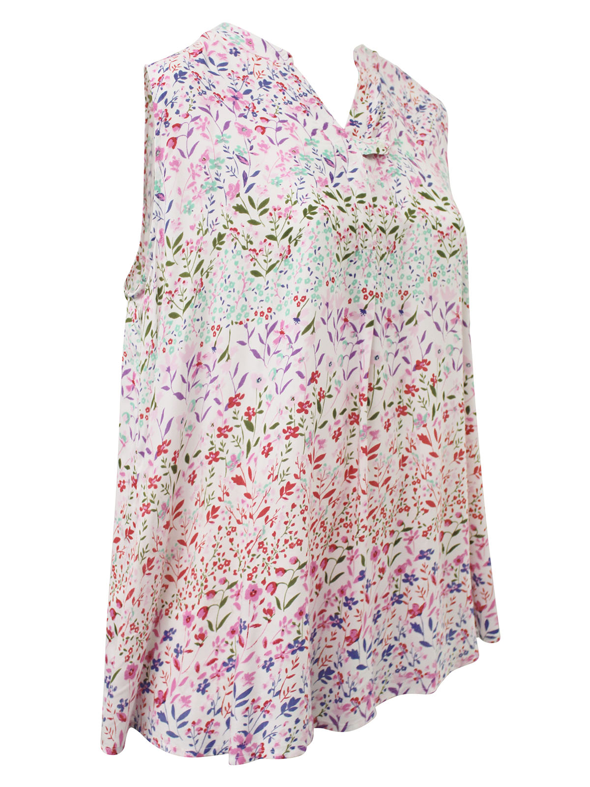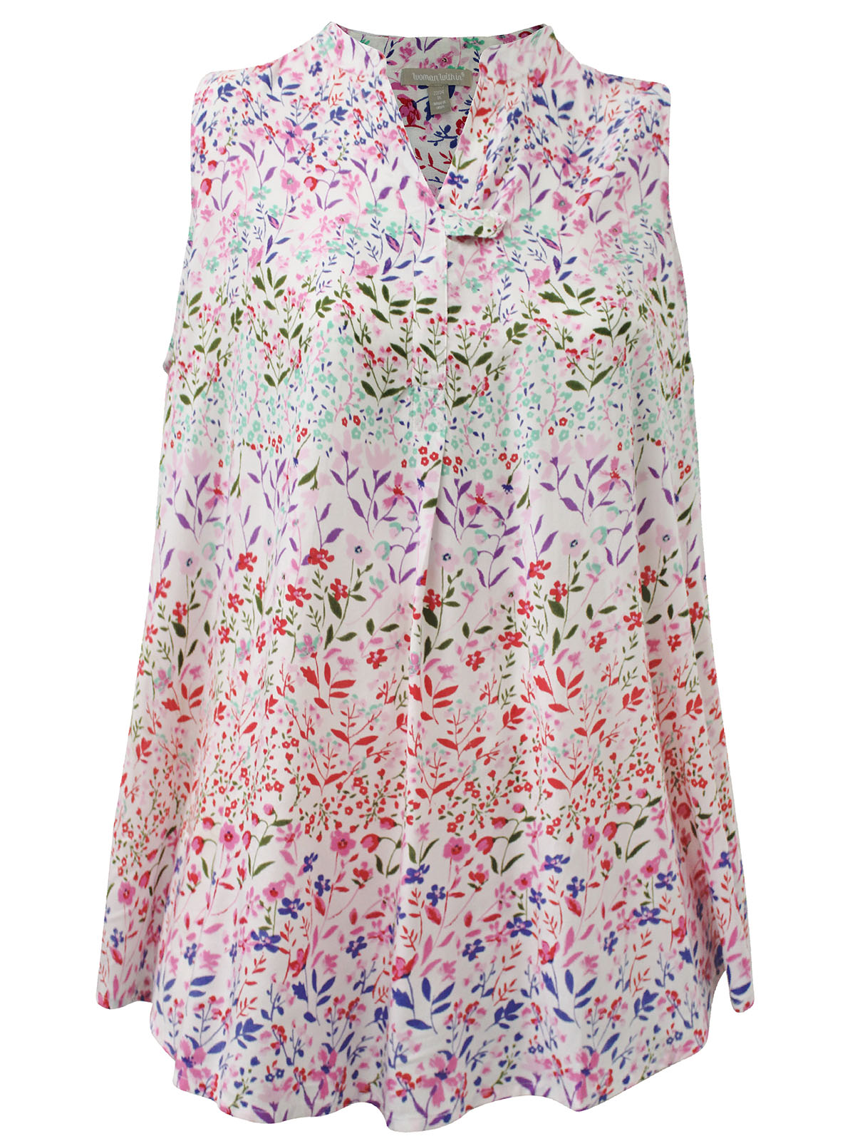 We've updated your favorite tab-front tunic in a sleeveless, easy-layering style. Mandarin neckline combines with a functional button tab and shirttail hem, making this a warm-weather must-have. Length 30in.