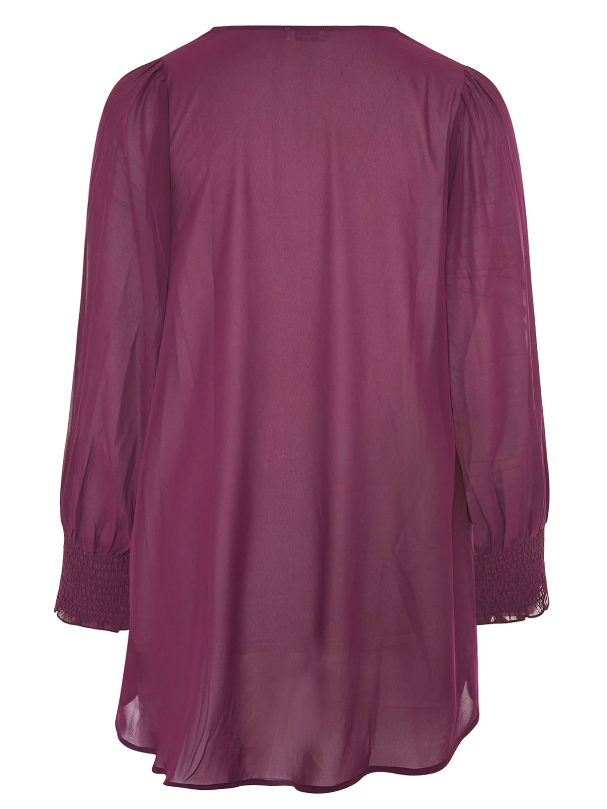 Upgrade your blouse collection with this chiffon piece. Comfortable in a woven fabric, it features balloon sleeves with shirred cuffs, a dipped hem, and a button-through fastening. Length 33in.