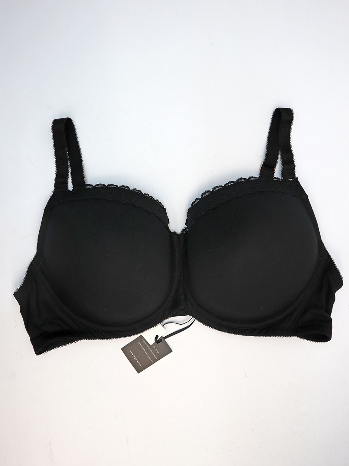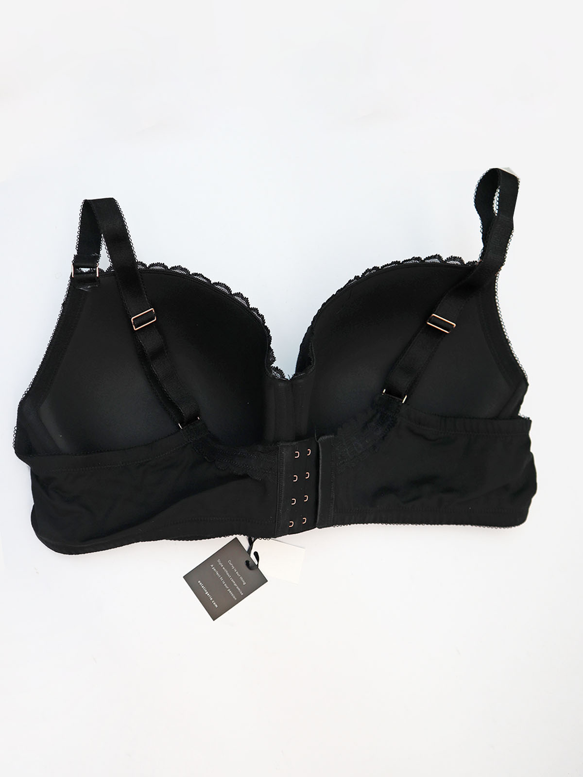Black Moulded Logo & Lace Border Soft Cotton T-Shirt Bra