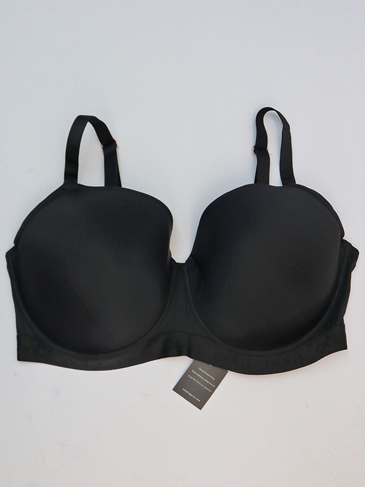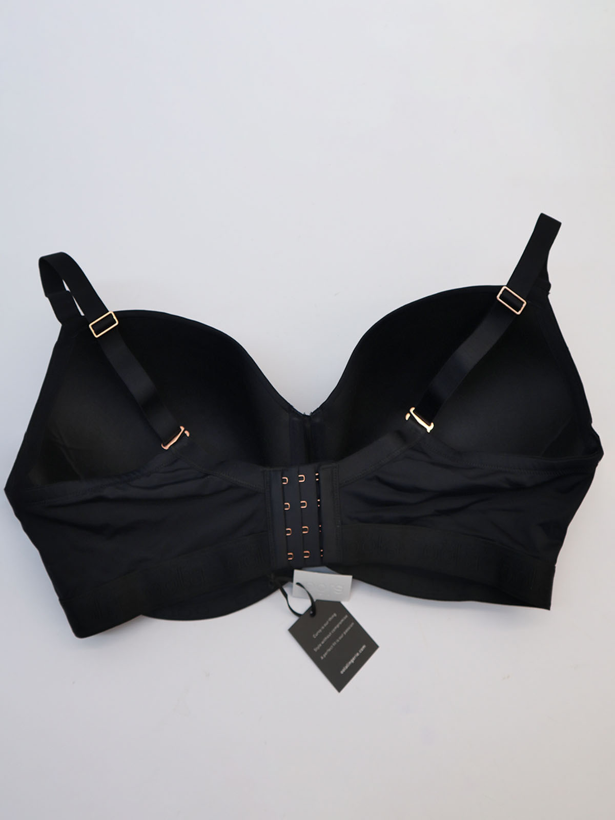 Full coverage, ultra-smooth soft padding under-wired bra for extra support. Adjustable comfort soft straps with multi-way option. Rose gold 4 hook and eye fastening, U-back design, Logo embossed elastic under-bust support, and bones free sides for total comfort and flexibility. Plus size bras, Sizes 38 to 46. Cups D-DD-E-F-FF-G.