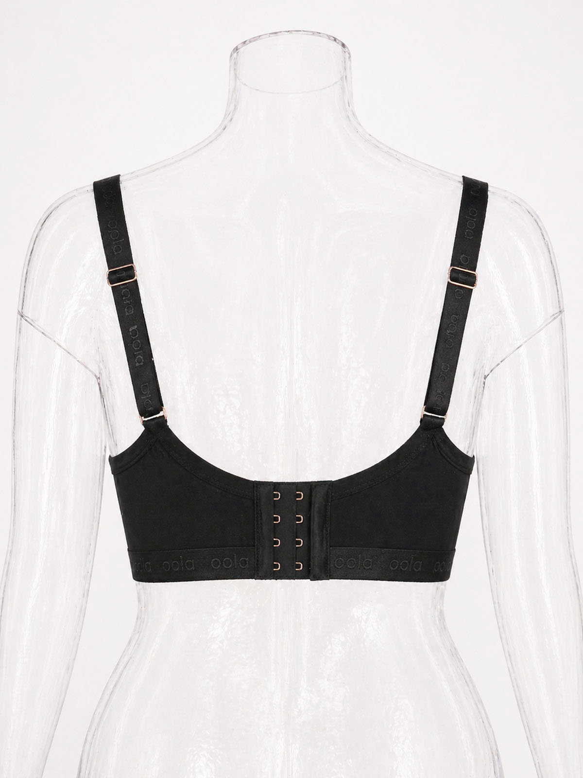 Full coverage, wire soft bra, with adjustable comfort soft straps, rose gold 4 hook and eye fastening. U back design to give smooth back silhouette. Flash rose gold brand disc and embossed logo under-bust elastic band. No side bones for a comfortable and flexible fit. Plus size bras, Sizes 38 to 46. Cups D-DD-E-F-FF-G.