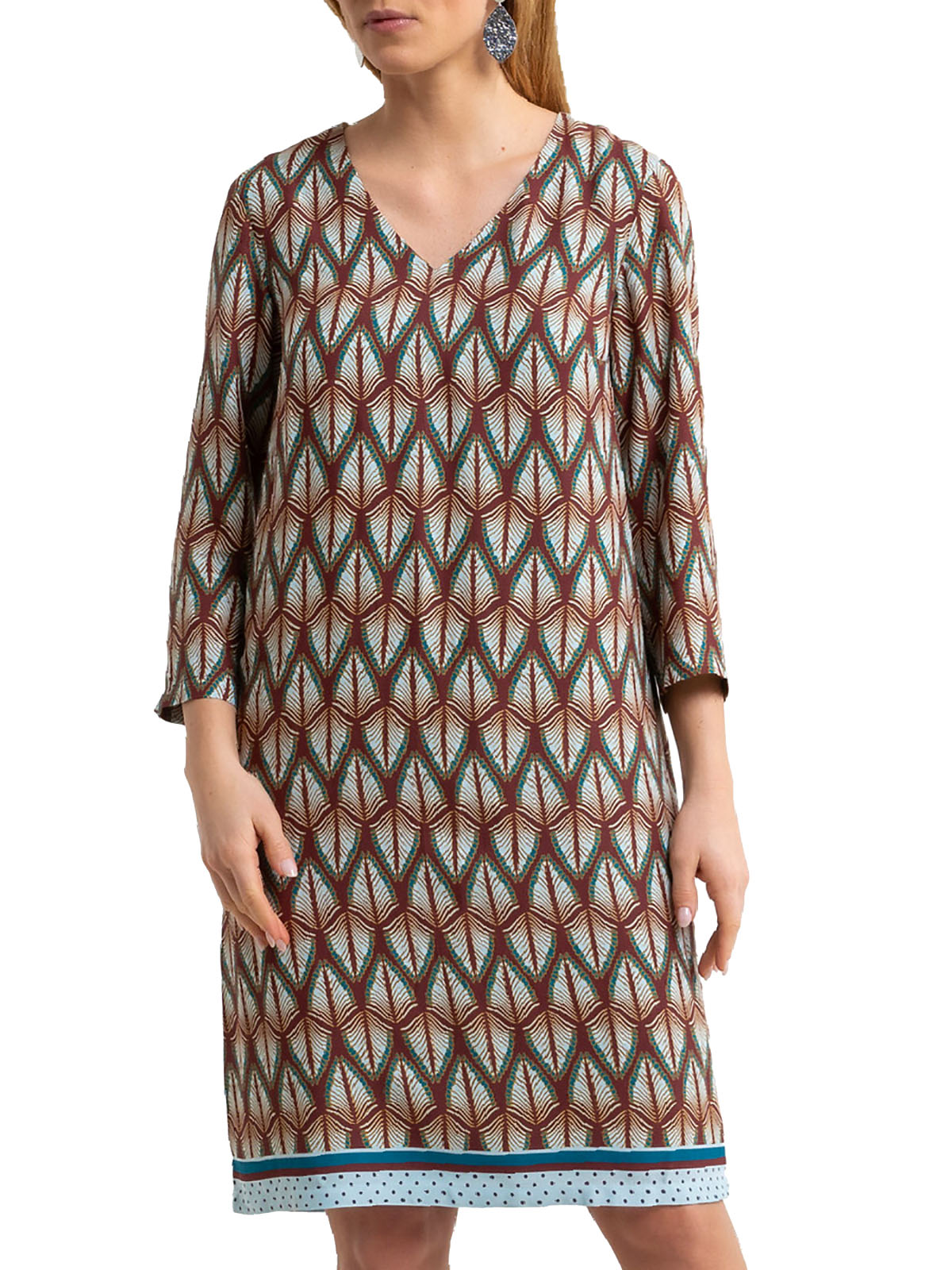 This shift dress is a great easy to wear addition to your wardrobe. Featuring a v-neckline, 3/4 length sleeves and concealed rear zip fastening. Lined. Length 42in.