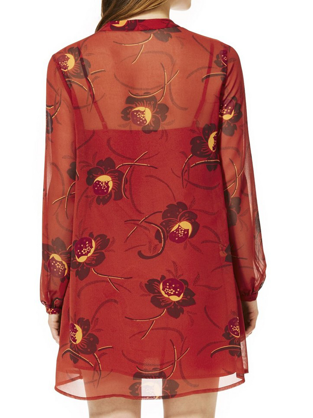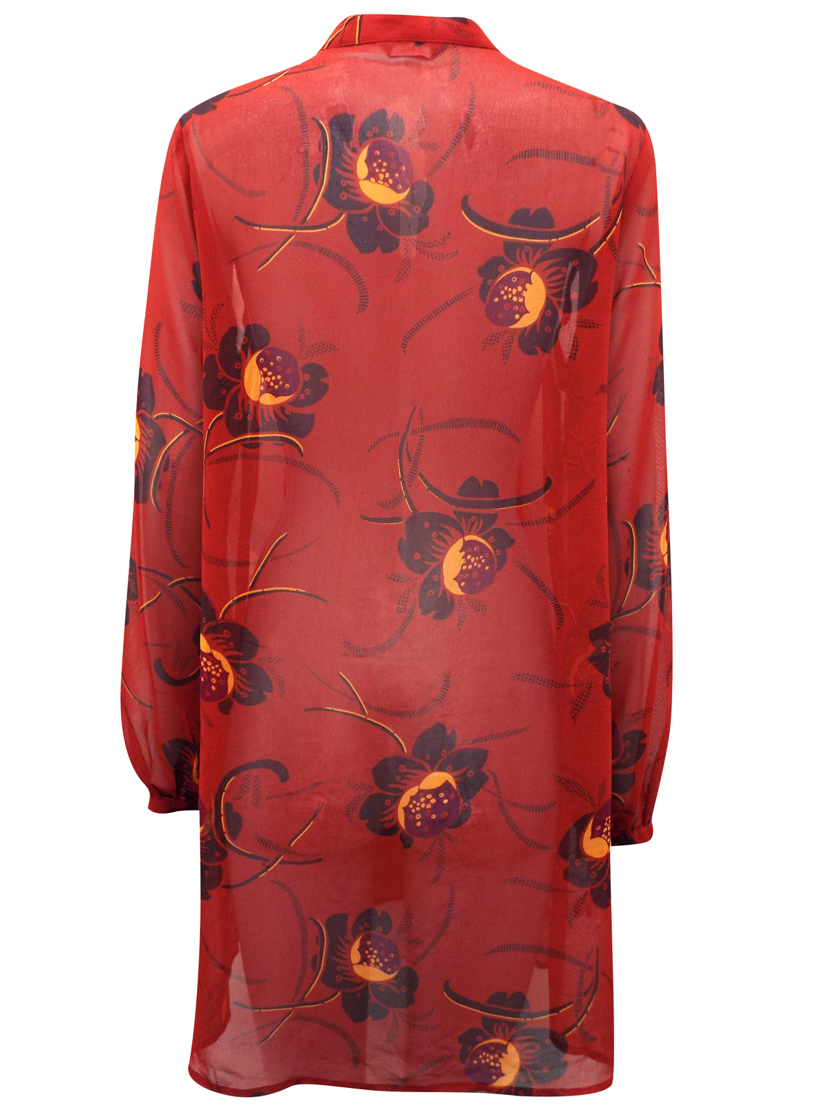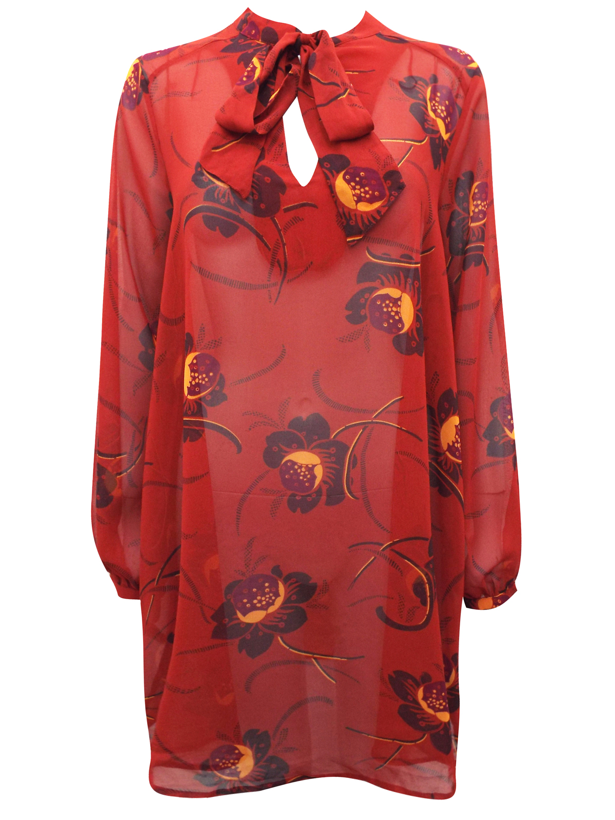 This tunic offers the ultimate combination of comfort and style. Featuring a functional tie neck with keyhole detail and long sleeves. Length 36in