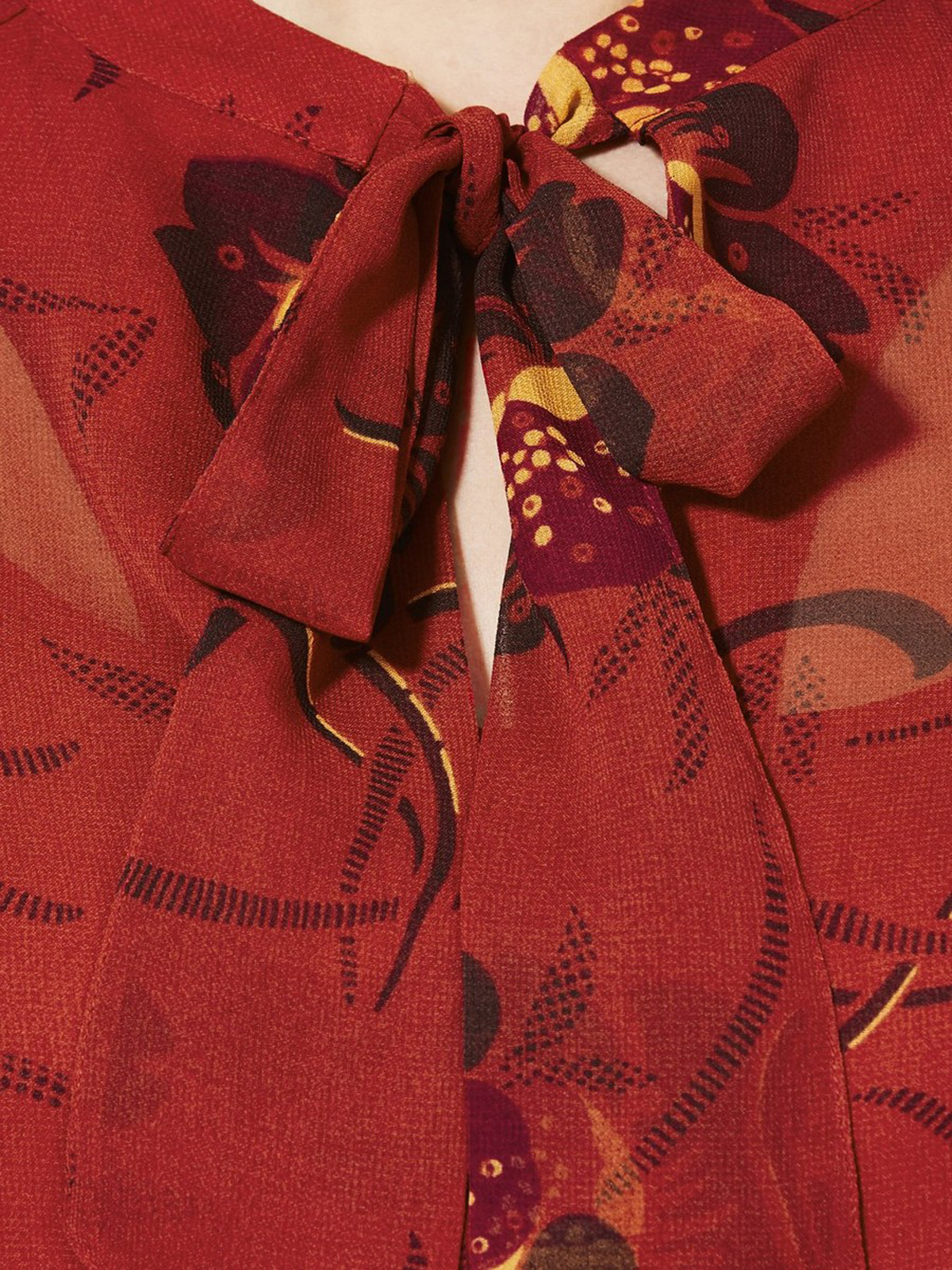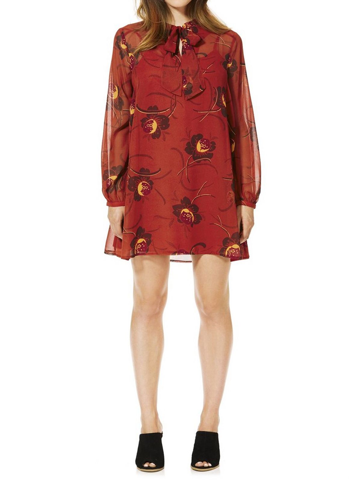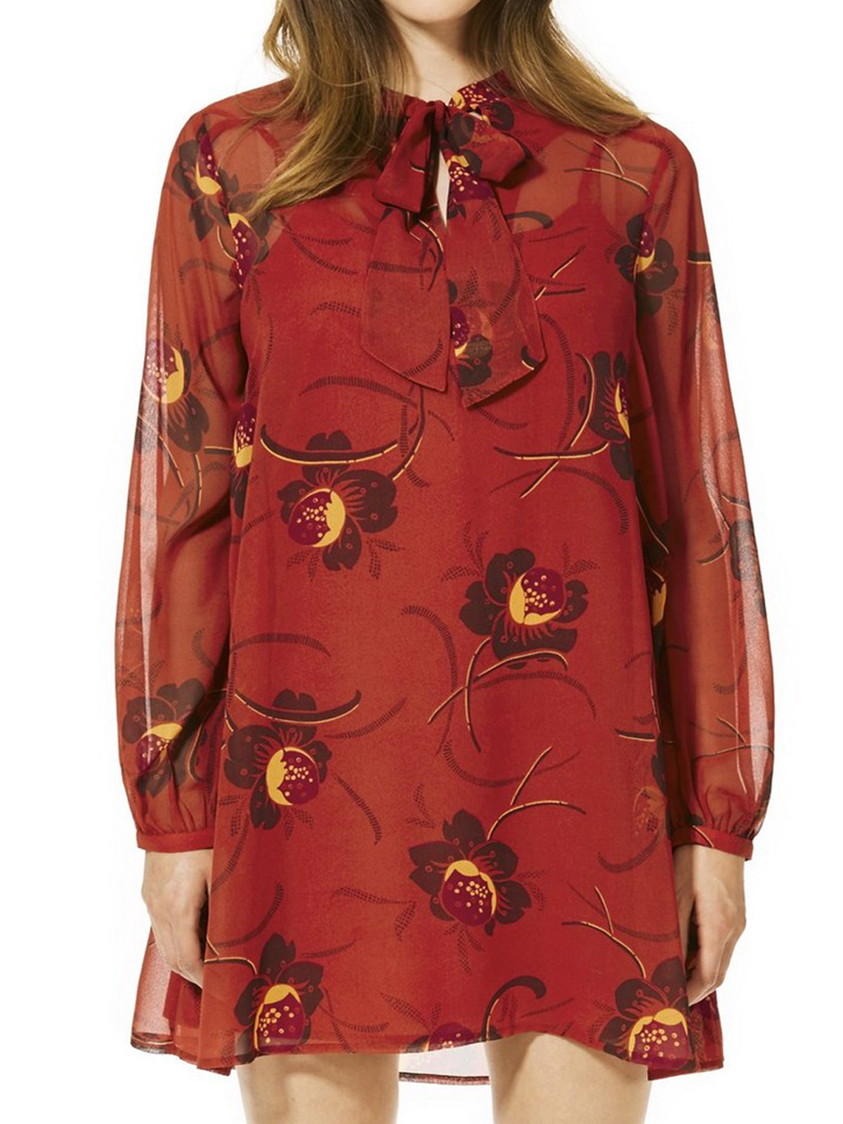 This tunic offers the ultimate combination of comfort and style. Featuring a functional tie neck with keyhole detail and long sleeves. Length 36in