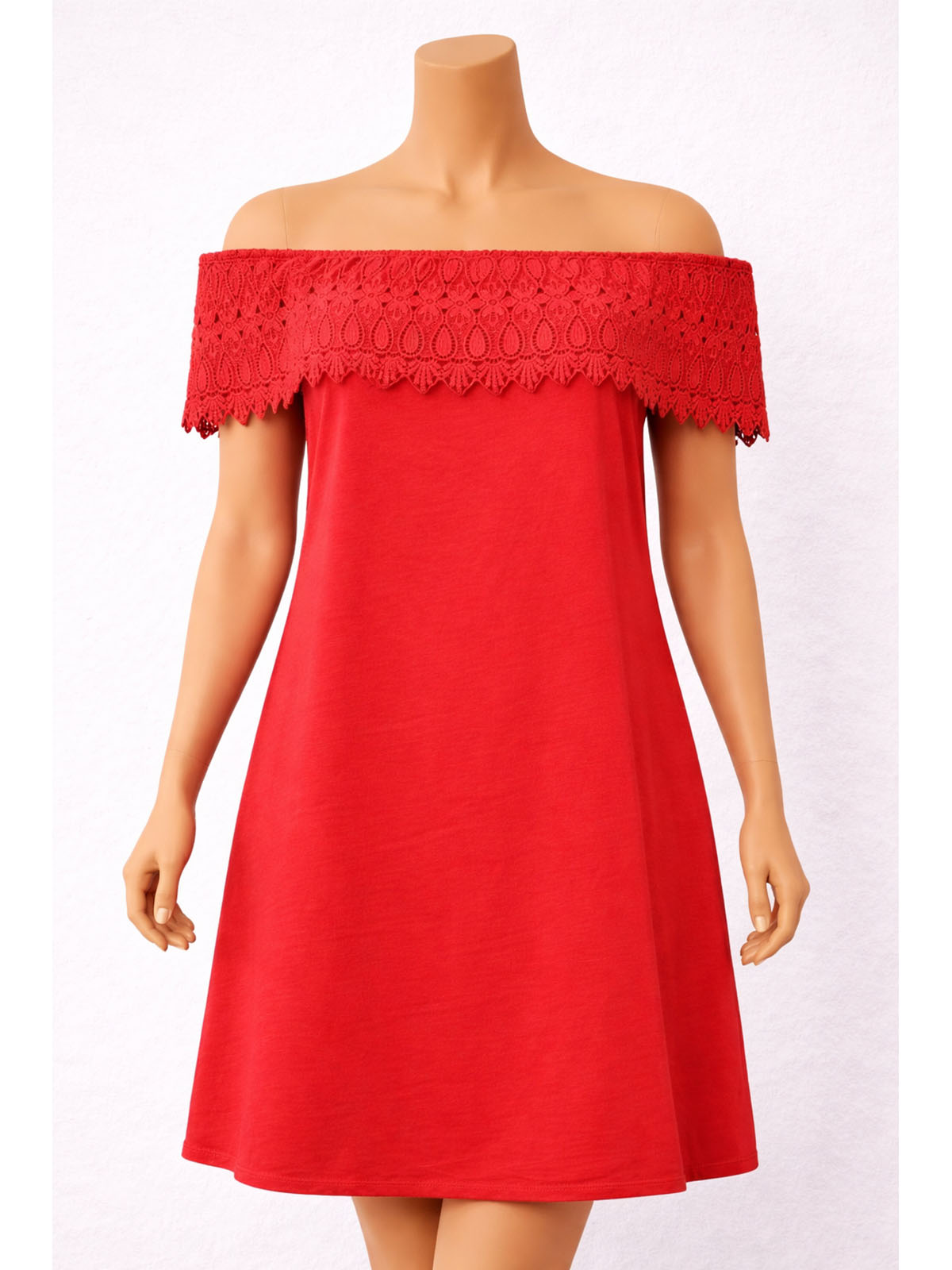 RED Pure Cotton Crochet Bardot Dress - Size 8 to 18