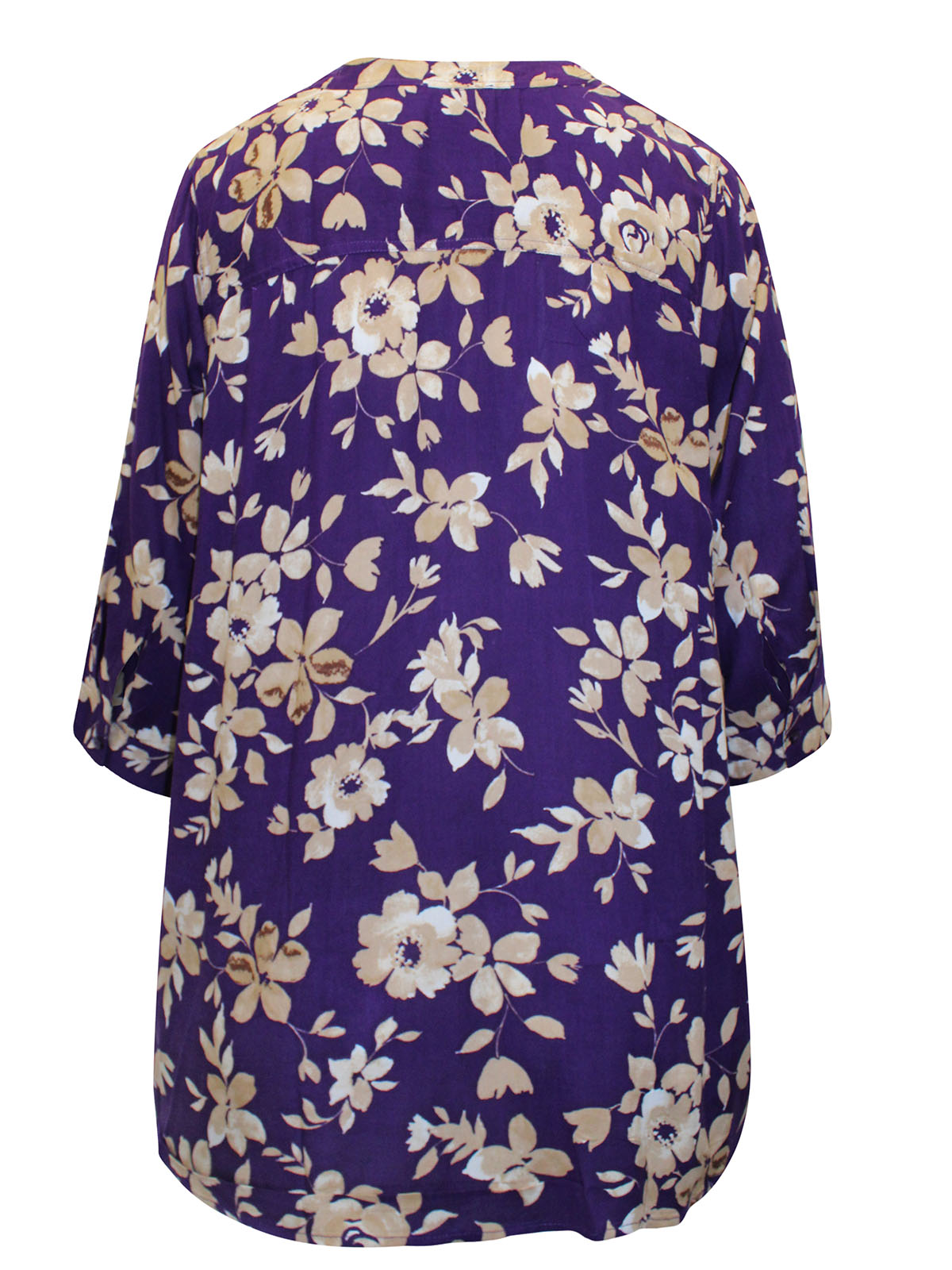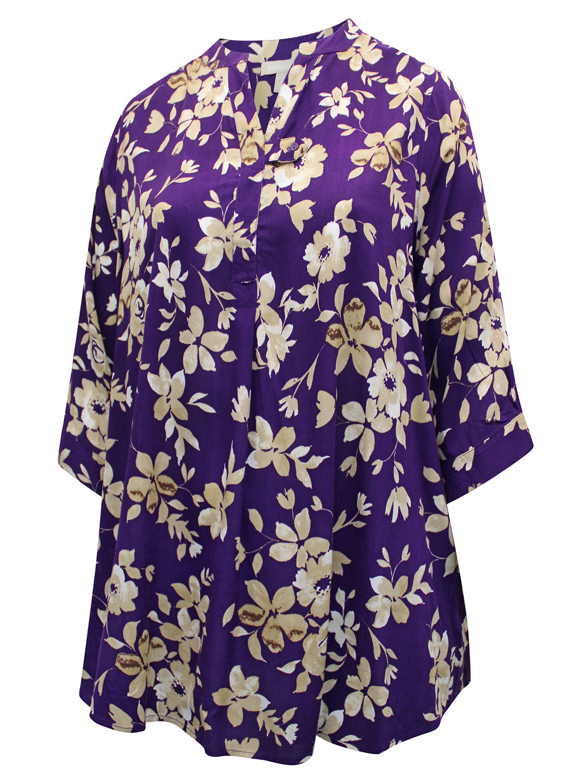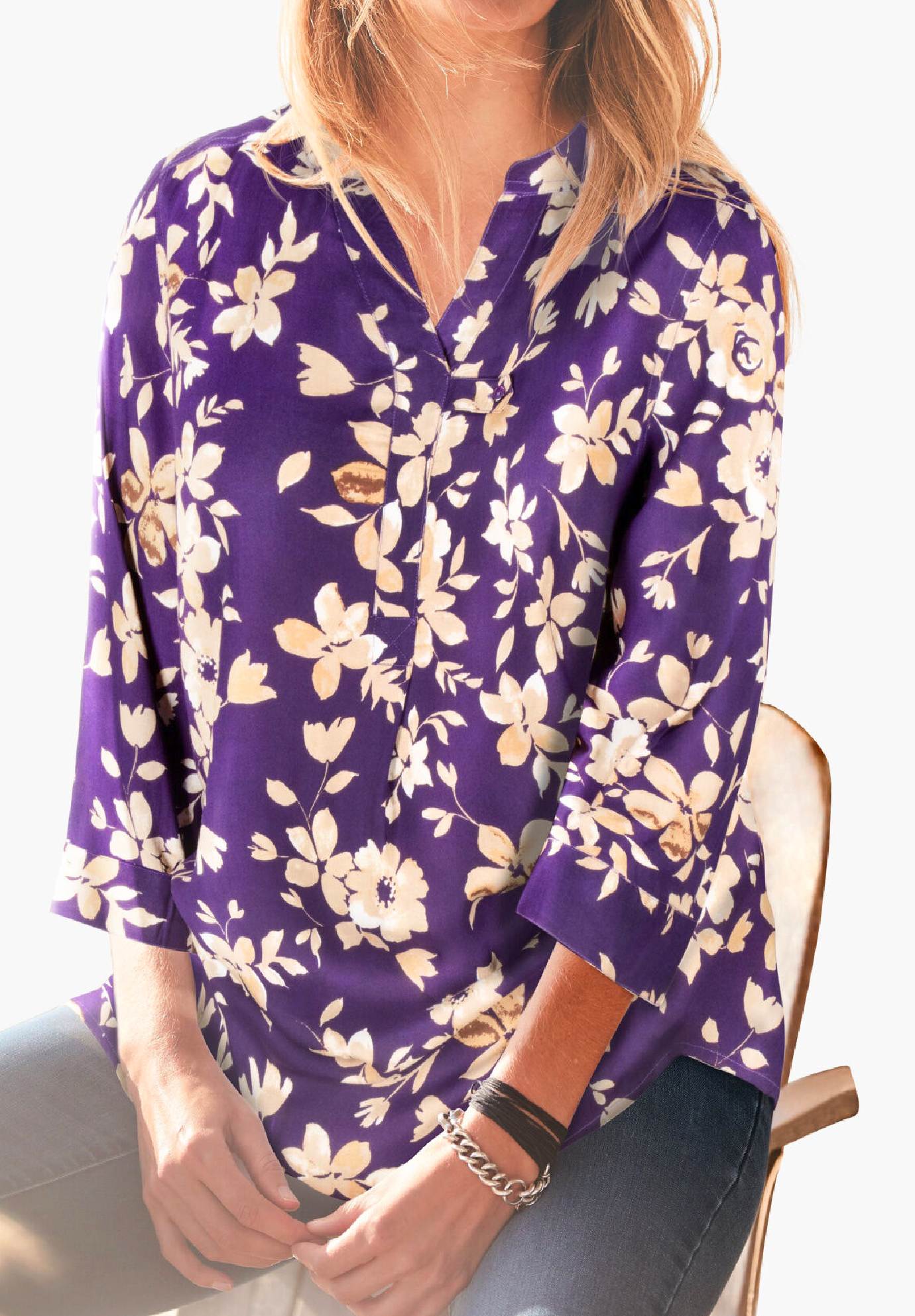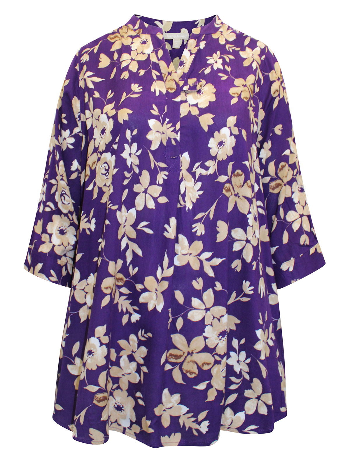 Floral Print 3/4 Sleeve Tab-Front Tunic