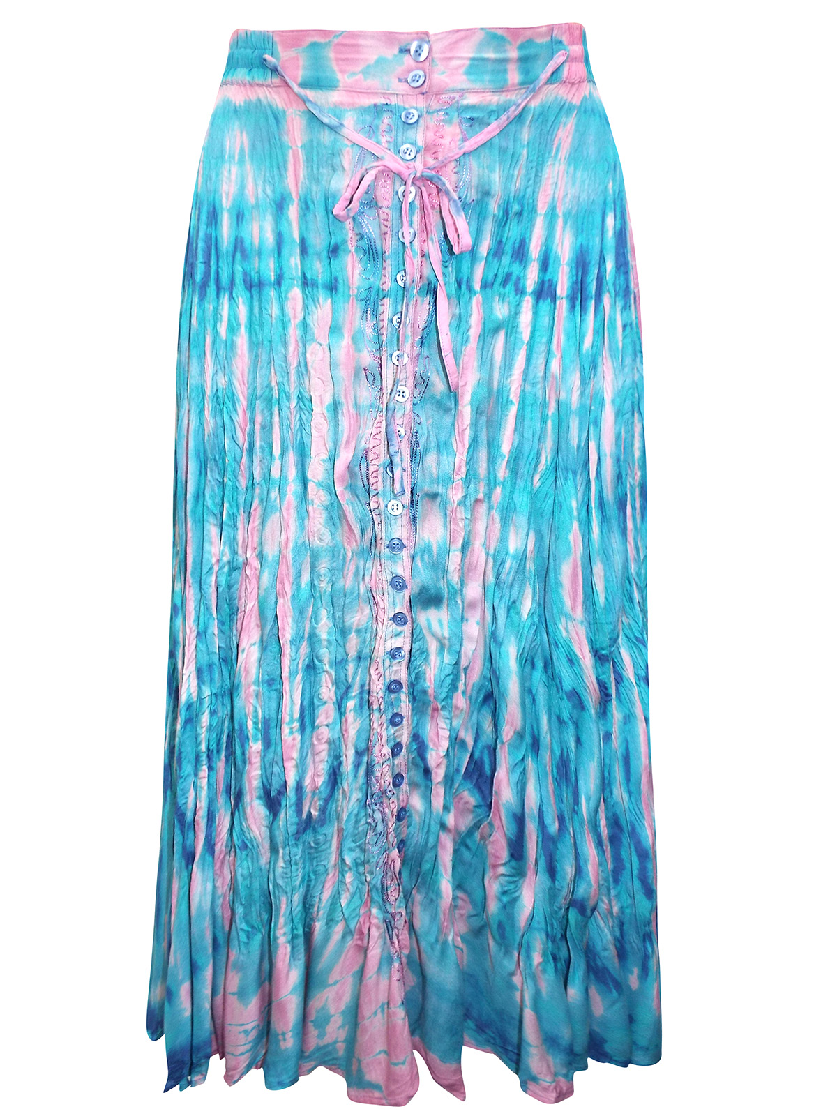 Button Through Tie Dye Crinkle Skirt