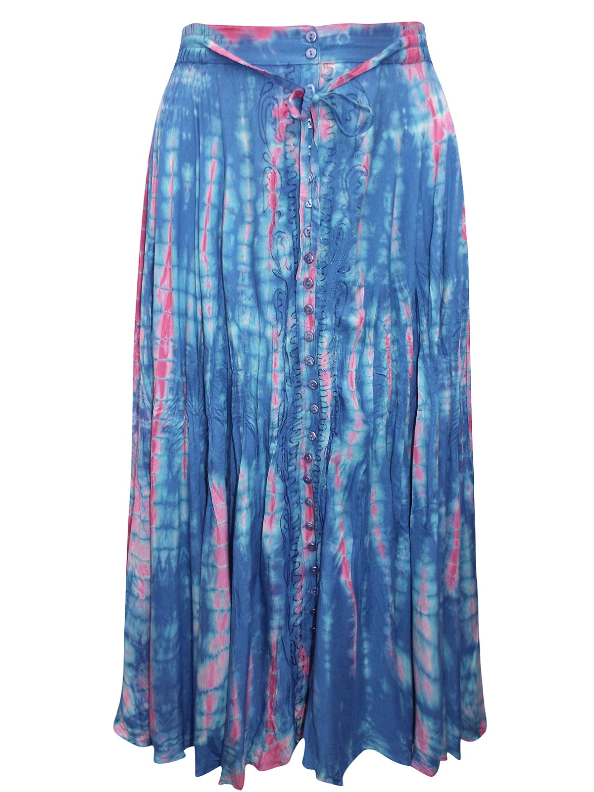 The Pyramid Collection SEA-BLUE Button Through Tie Dye Crinkle Skirt - Plus Size 12/14 to 28/30 (US M to 3X)