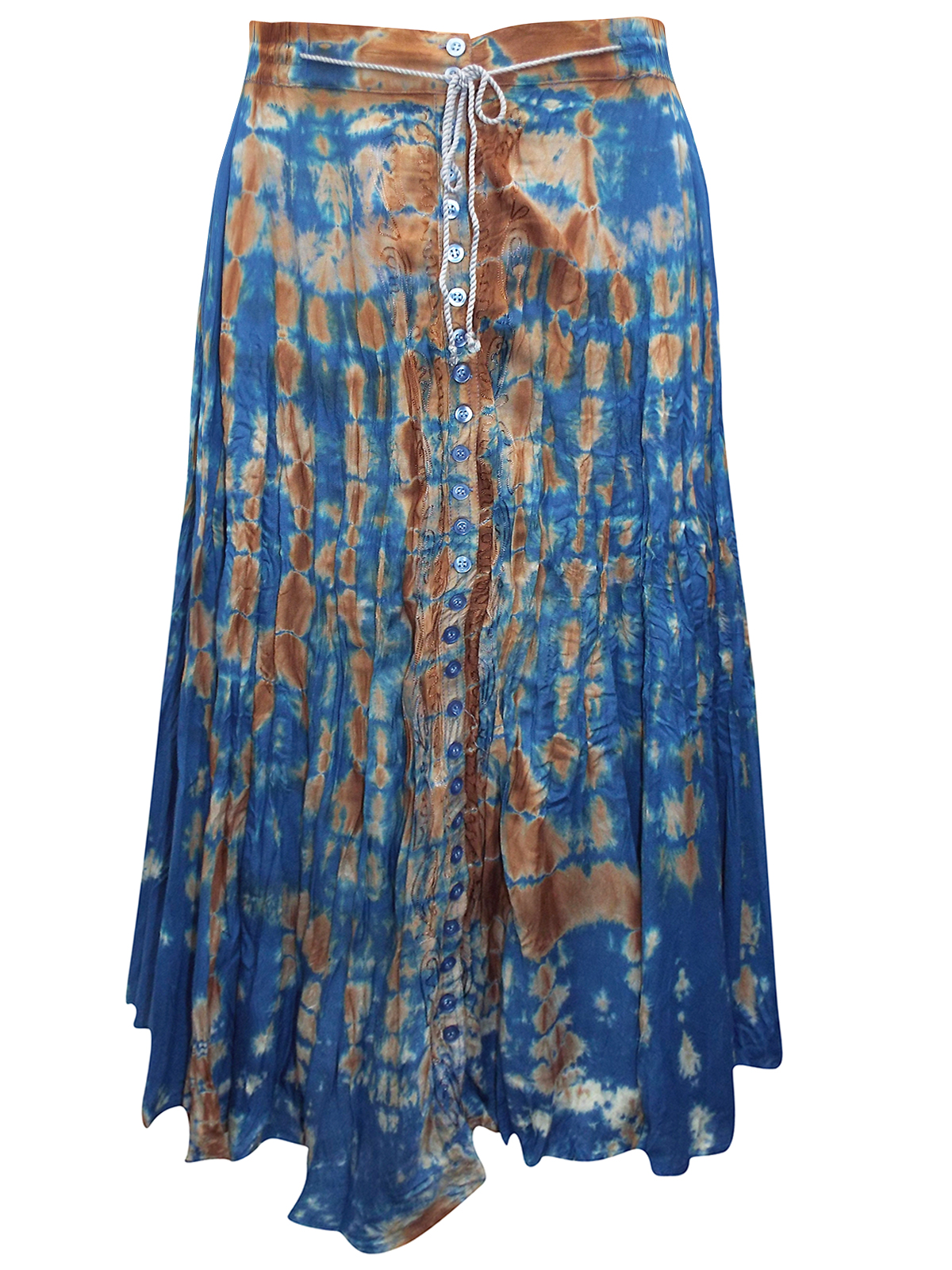 The Pyramid Collection BLUE Button Through Tie Dye Crinkle Skirt - Plus Size 4/6 to 20/22 (US XS to 1X)