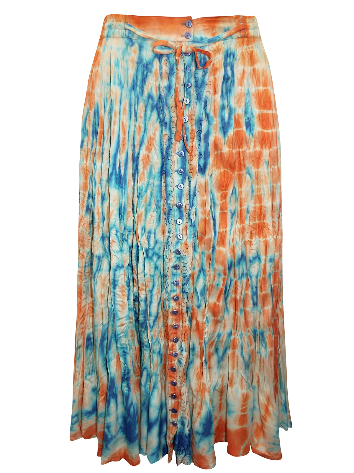 Button Through Tie Dye Crinkle Skirt