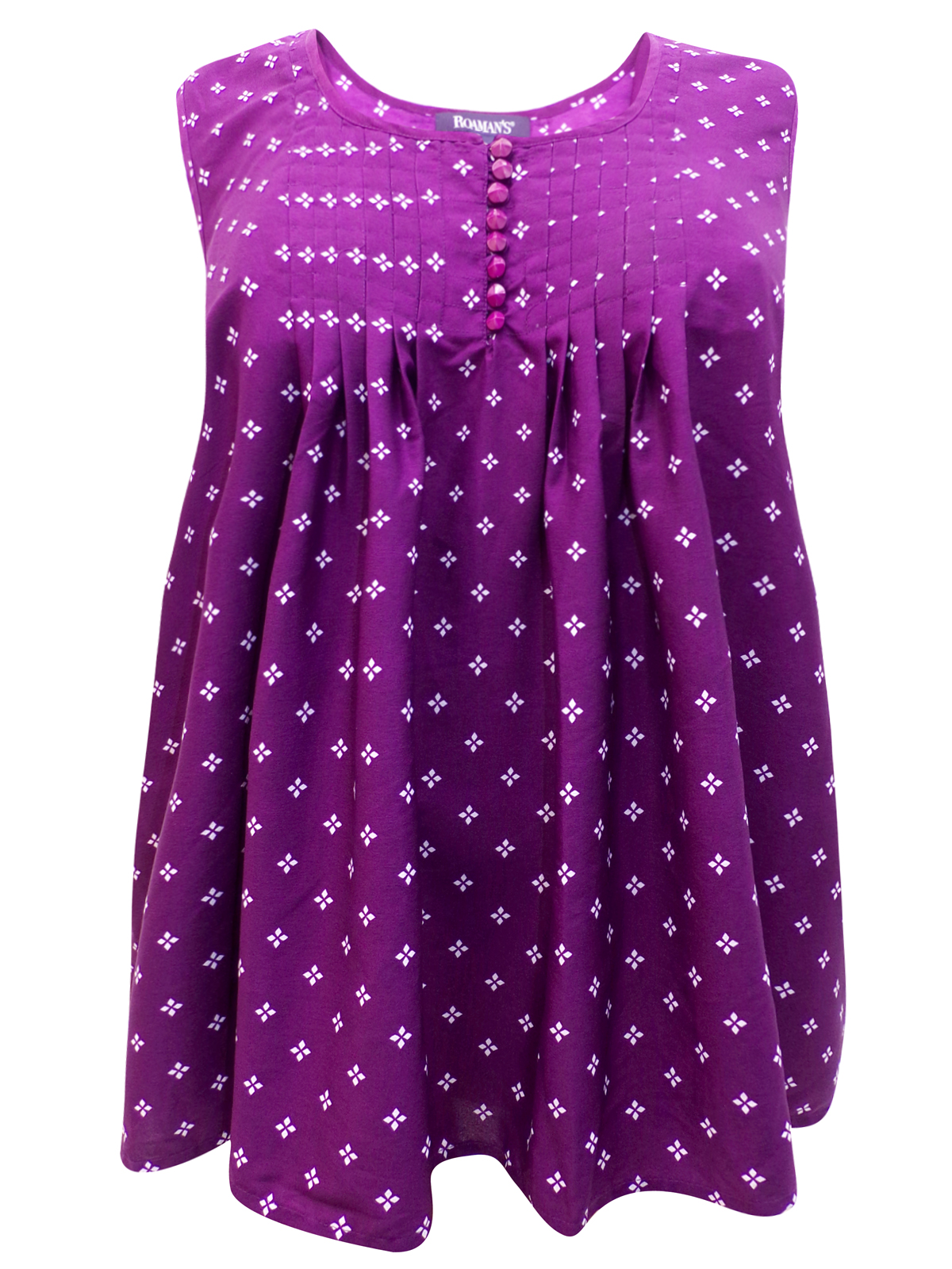 Roamans PURPLE Digital Floral Pleated Smock Top - Plus Size 20