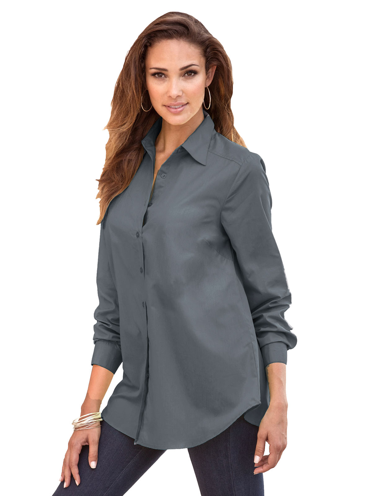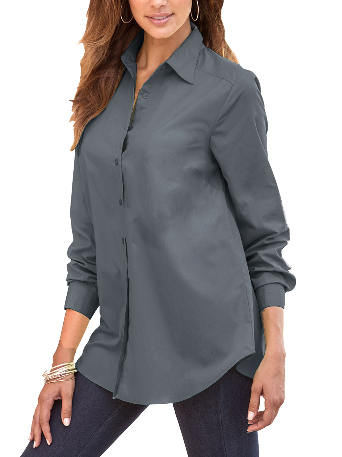 A classic button down style in lightweight georgette. Easy, relaxed shape with a collared neckline, button fastening and long sleeves. Length 29in.
