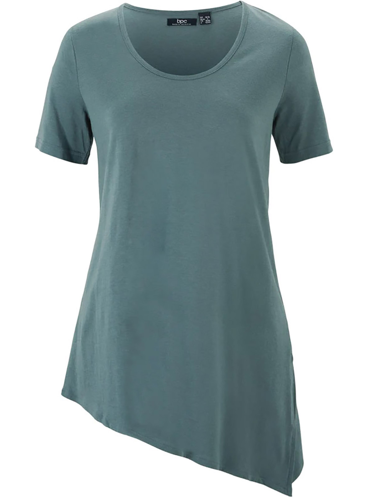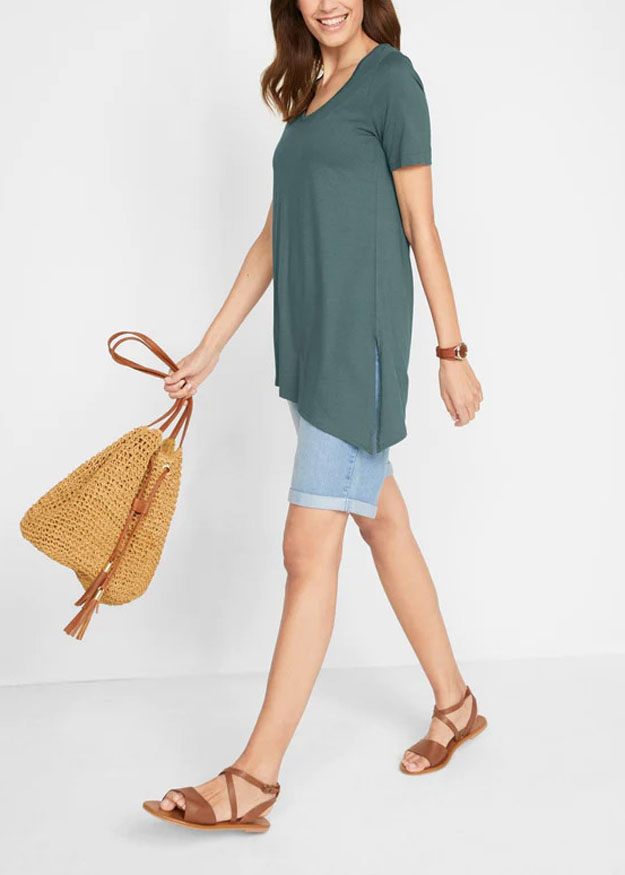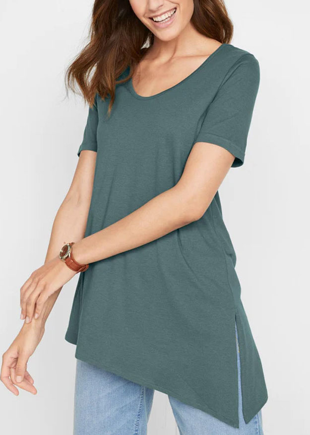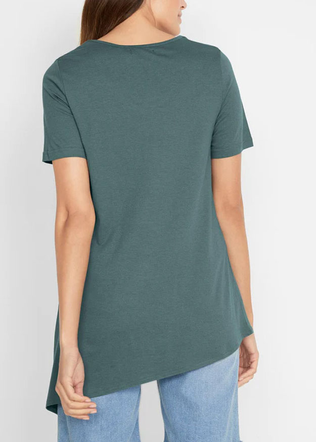 The perfect top for dressing up your denim. Made from a jersey fabric, it features a scoop neckline with short sleeves and an asymmetric hem, complete with split detail. Length 30in at shortest and 35in at longest.