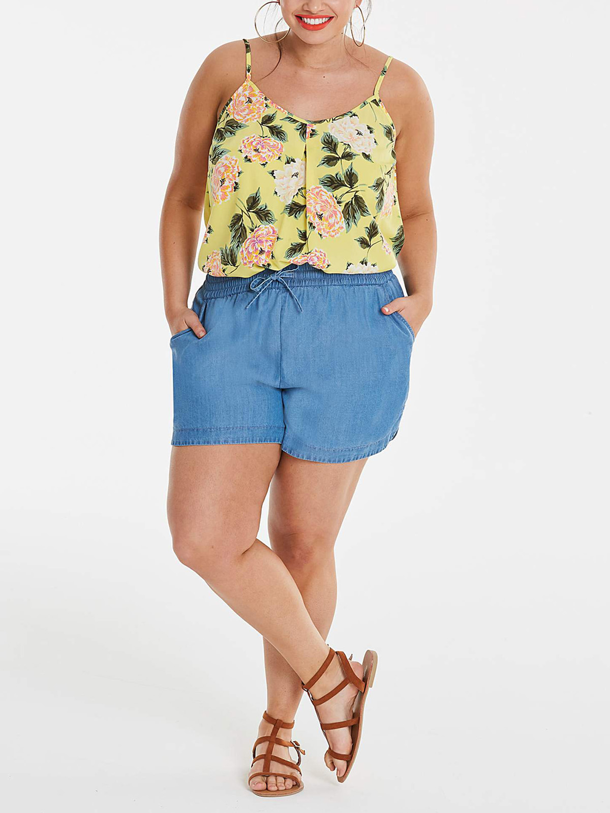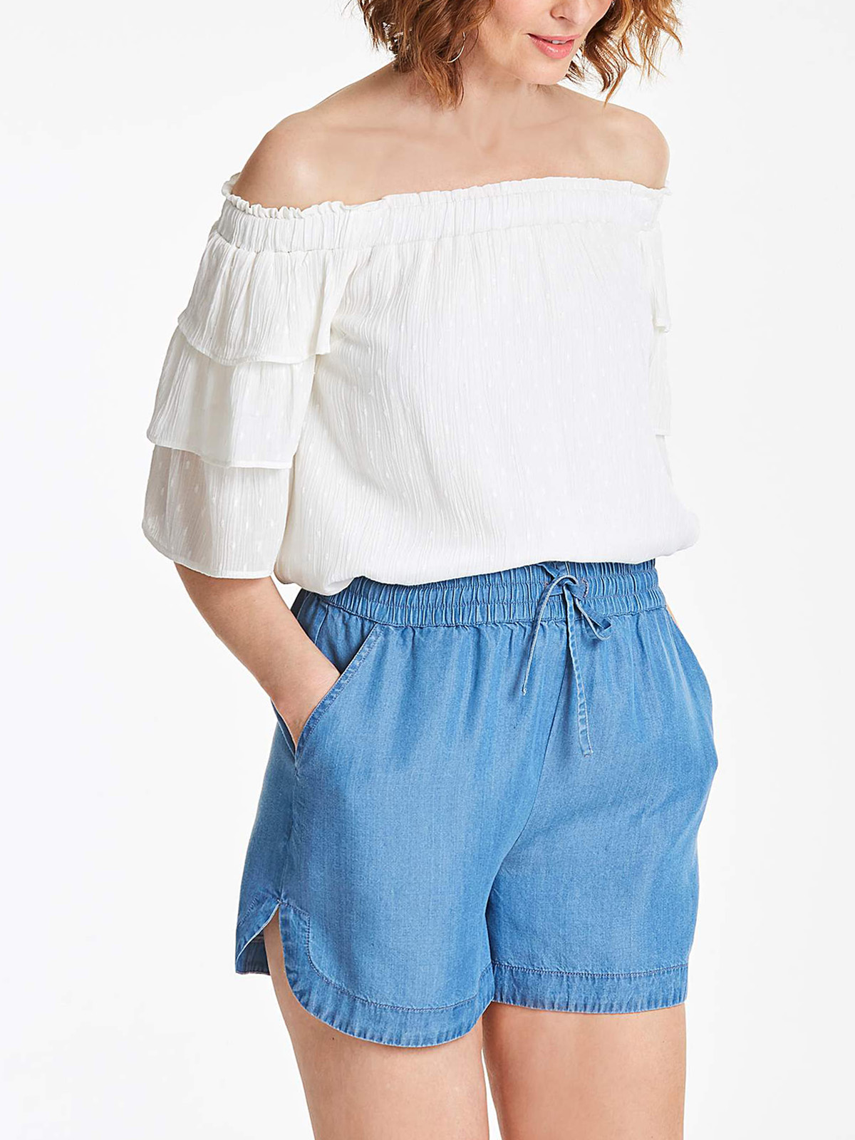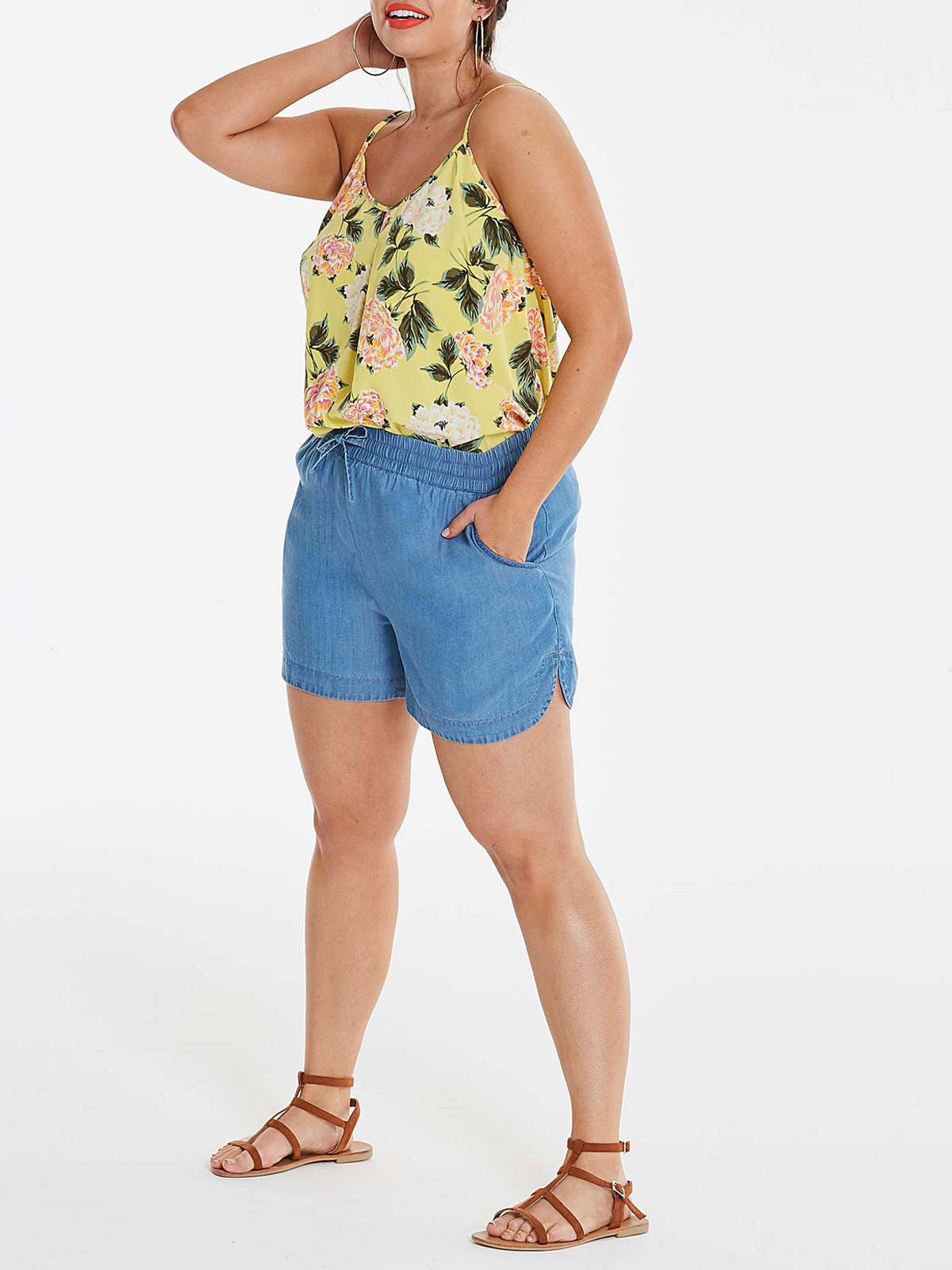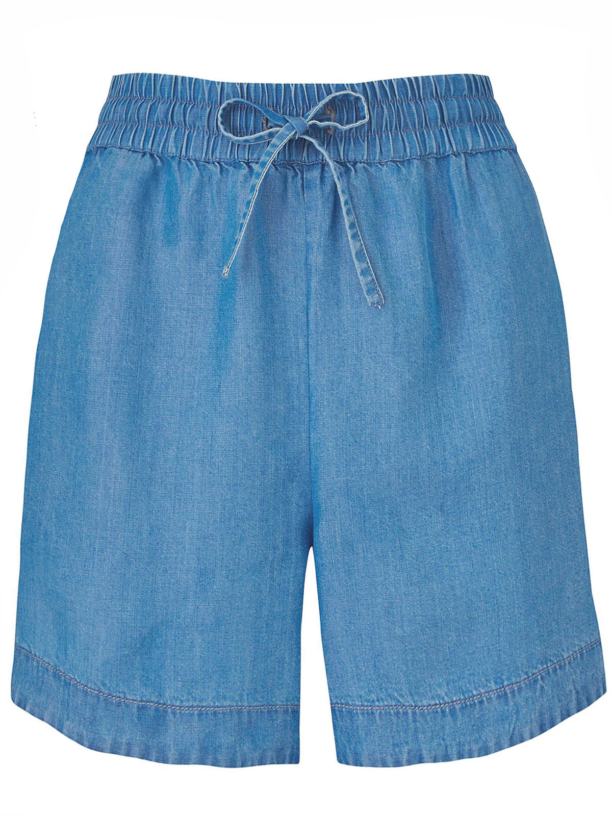 These soft lyocell denim shorts are perfect for summer holidays. In a relaxed, floaty fit featuring an elasticated waistband and pockets at the side, this is an easy pull-on style. Inside leg 3in/10cm.