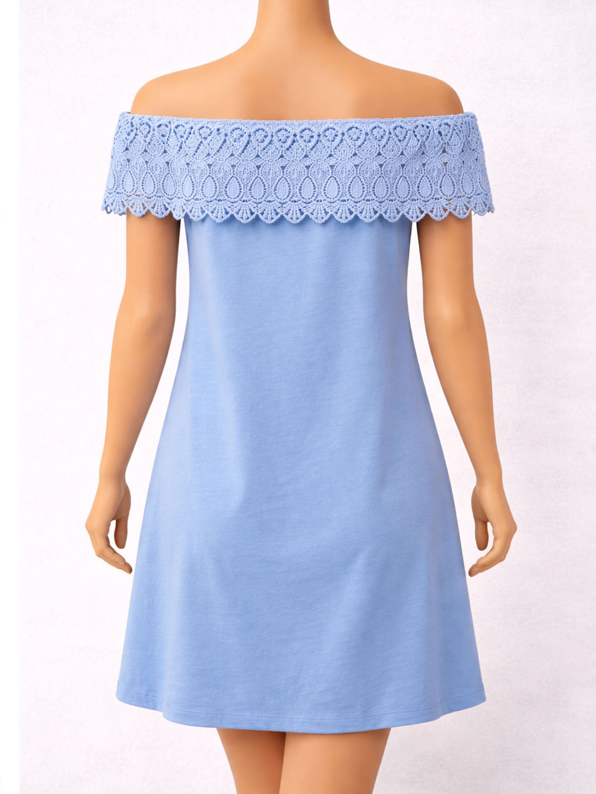 Take sweetness to a whole new level this season with this dashing dress. Featuring a Bardot design for versatile wearing options and a dashing of oh la la, with pretty crochet detail. Length 27in.