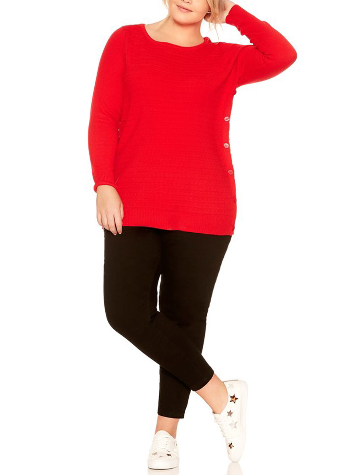 Cocoon elf in coziness with this knitted jumper. The perfect knit for colder days, its classic style offers a modern twist with button side detailing. Featuring a scoop neck, long sleeves and ribbed trim.