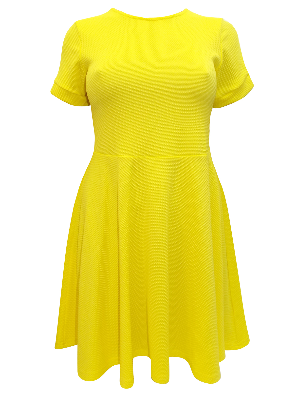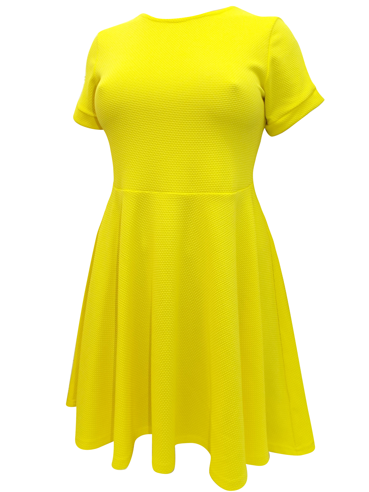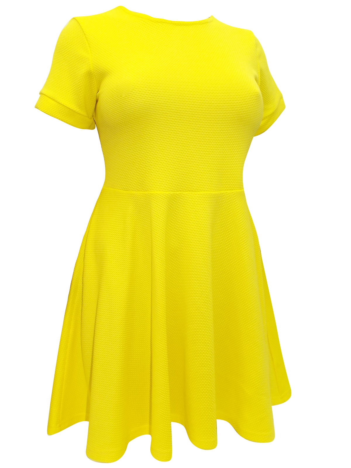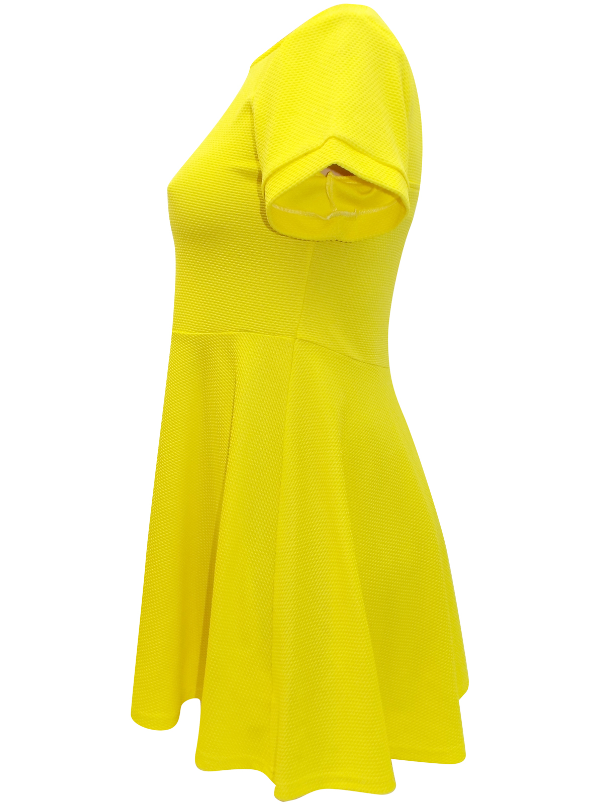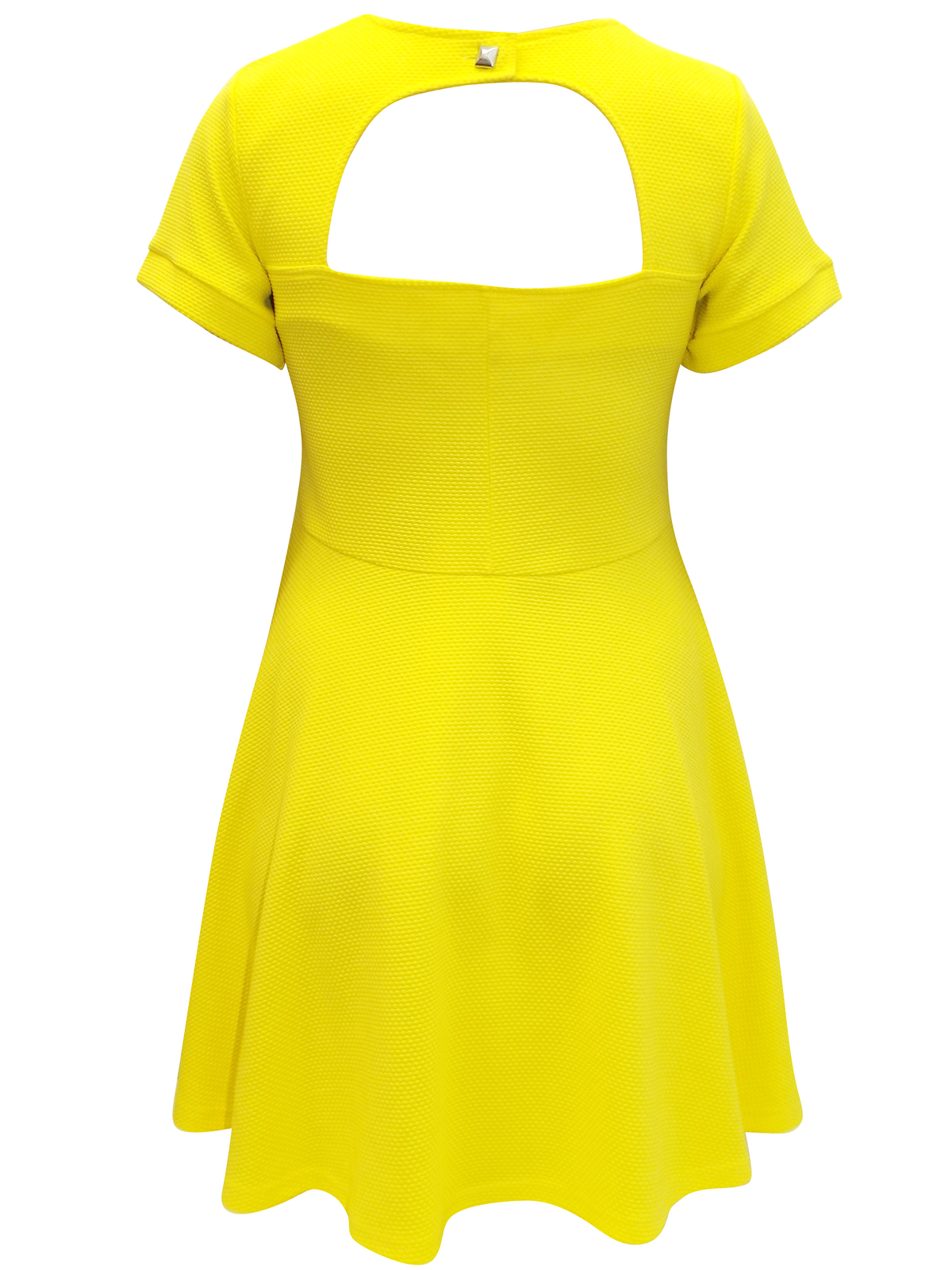 This skater dress is made from a textured fabric with short cuffed sleeves. Scoop neckline and cu-out rear with single button fastening. Length 35in