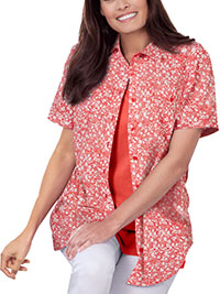 RED Pure Cotton Floral Print Tunic - Plus Size 16 to 32
