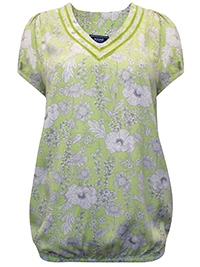 GREY Cotton Rich Floral Cat Print Top - Plus Size 14 to 30/32