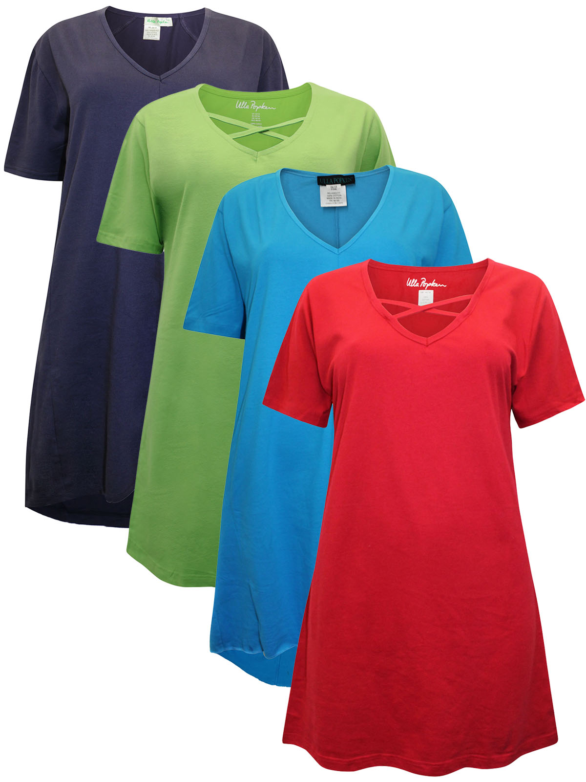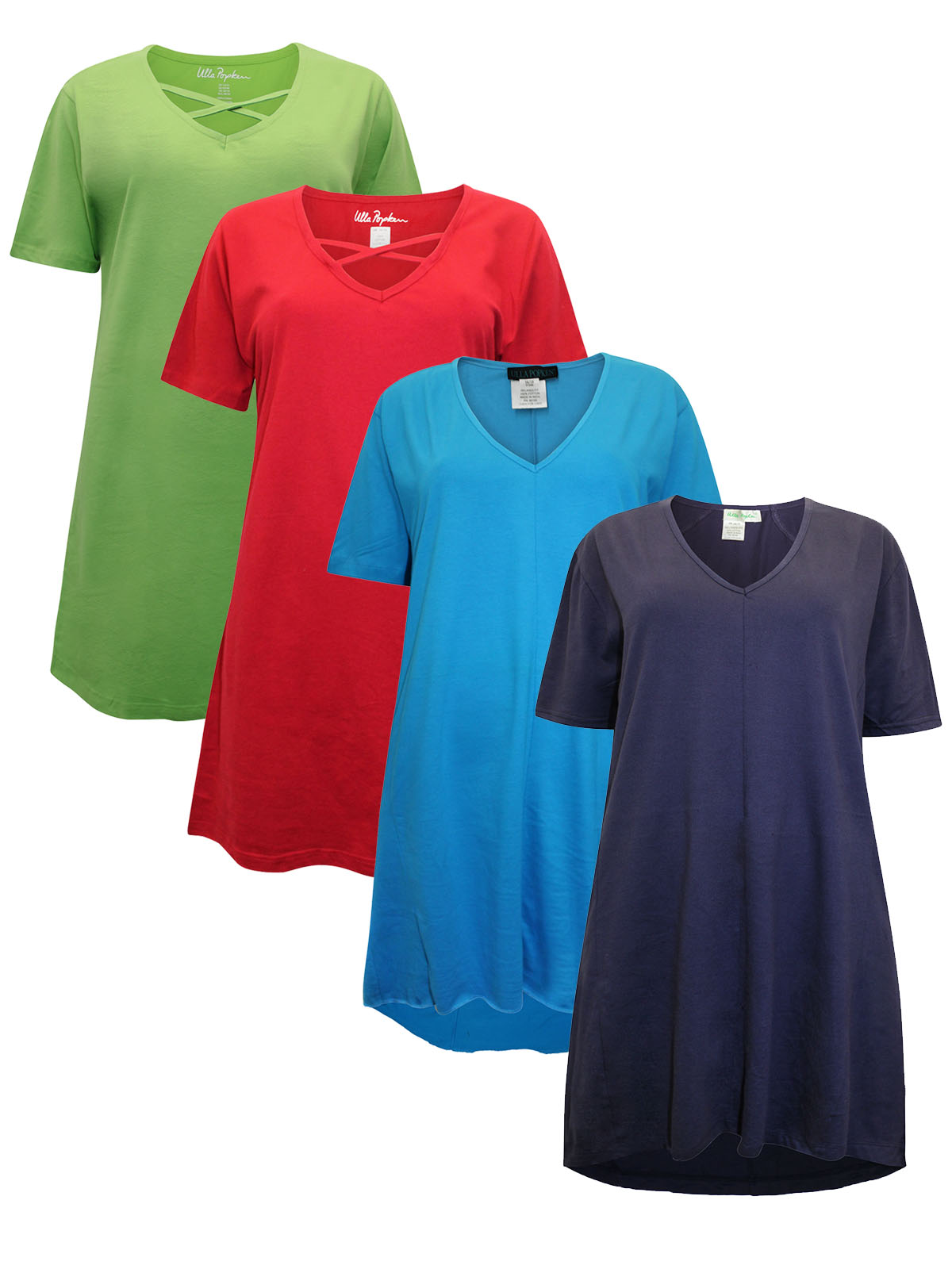 A mixed pack of tunic tops with a variety of styles, colors and lengths.
