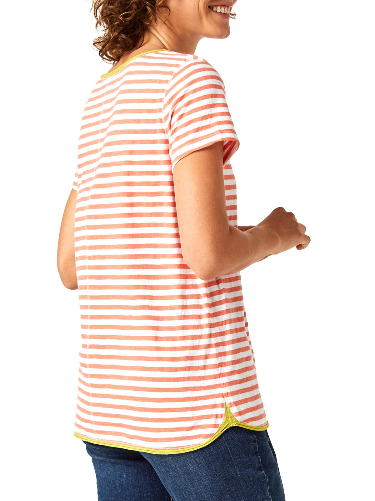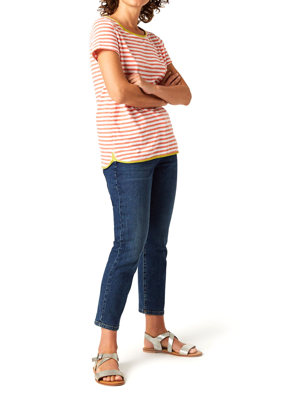 In 100% cotton the Cherri jersey tee is a versatile wardrobe staple you'll be sure to reach for again and again. With rolled edges, this everyday tee has a crew neck and a flattering curved hem. Length 25.5in.