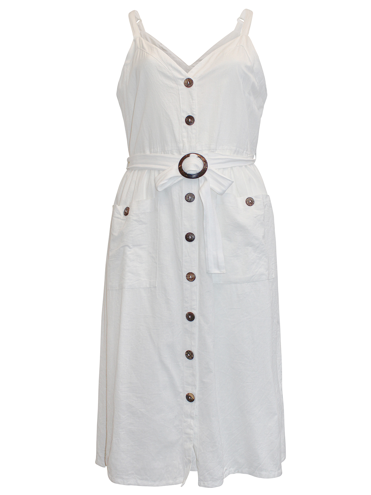 Step out in style this summer. This new-in maxi dress made from a soft cotton fabric features an adjustable tie waist, a v-neckline, button fastening and two functional pockets. Length 45in.