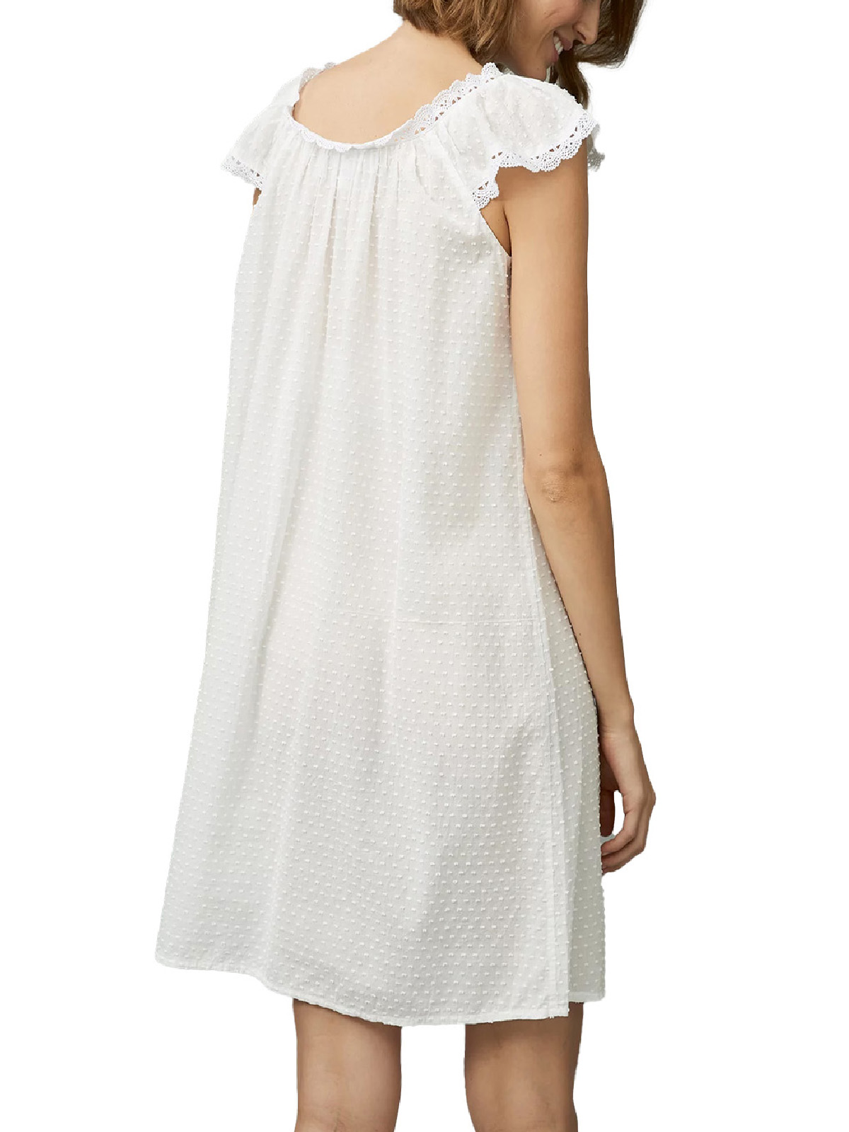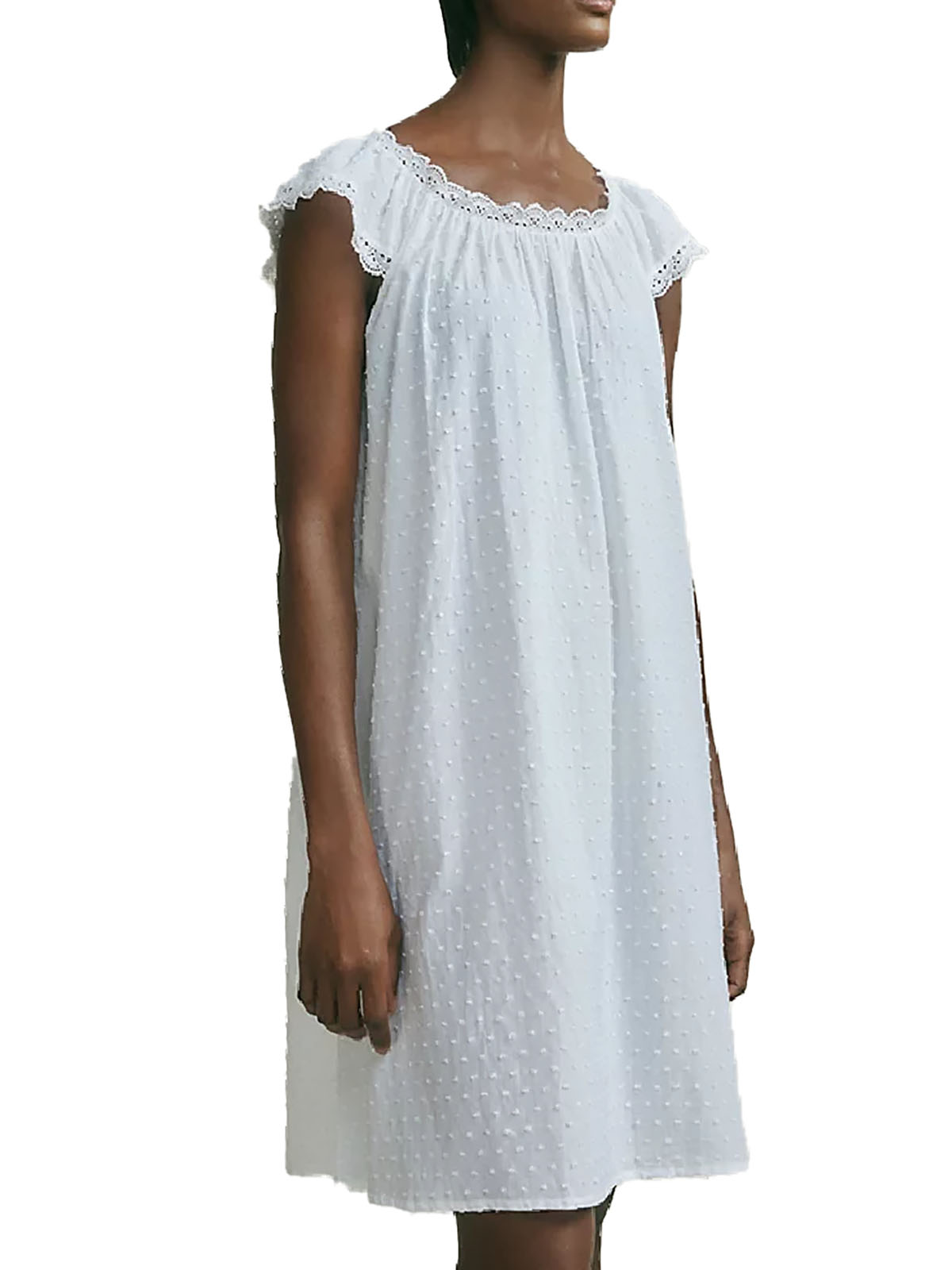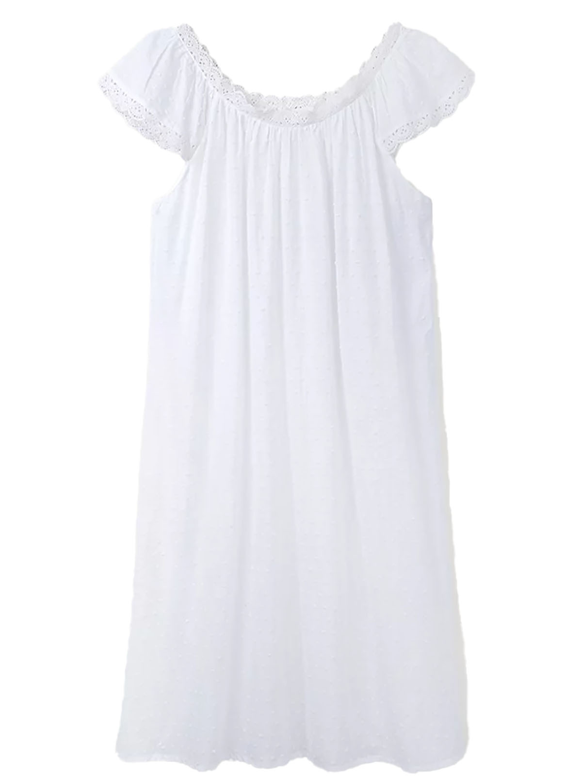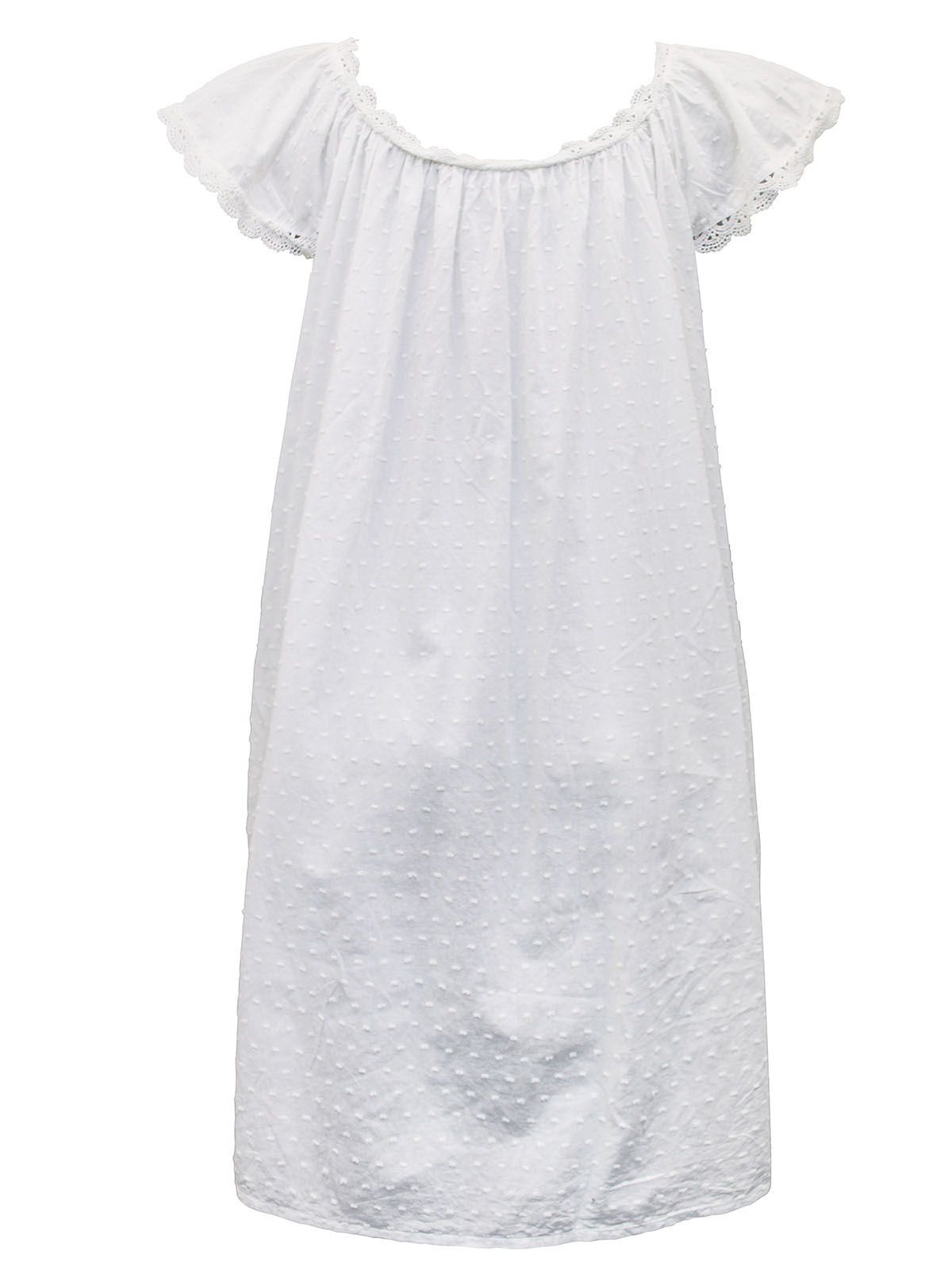 Pure Cotton Dobby Embroidered Lace Trim Nightdress