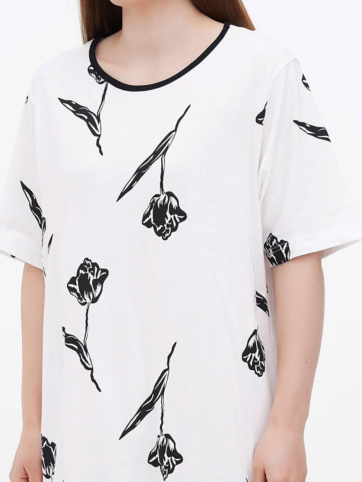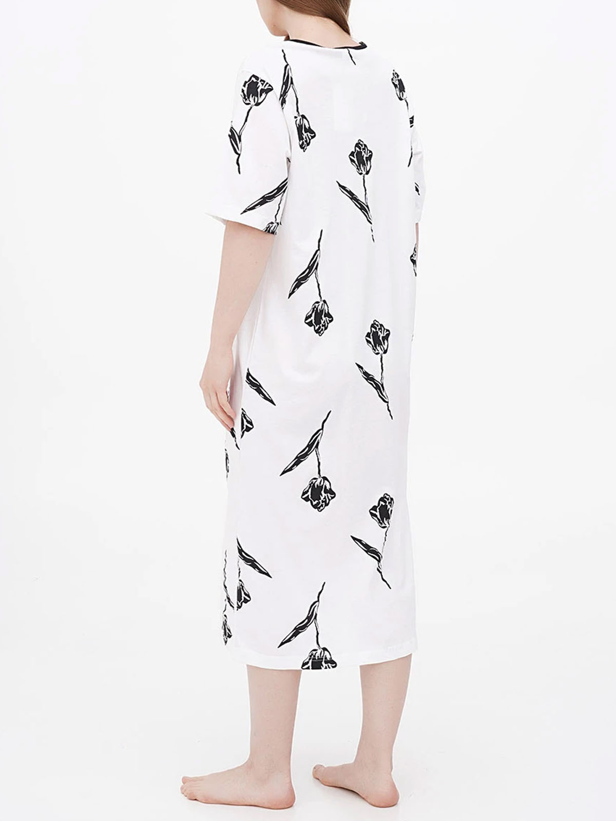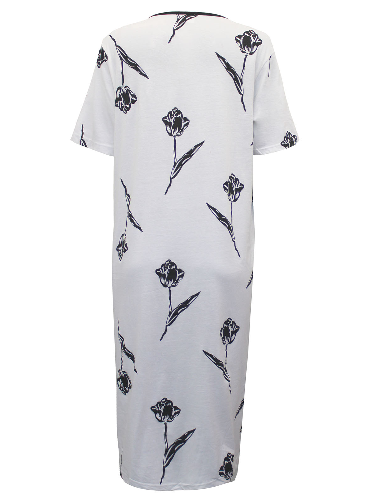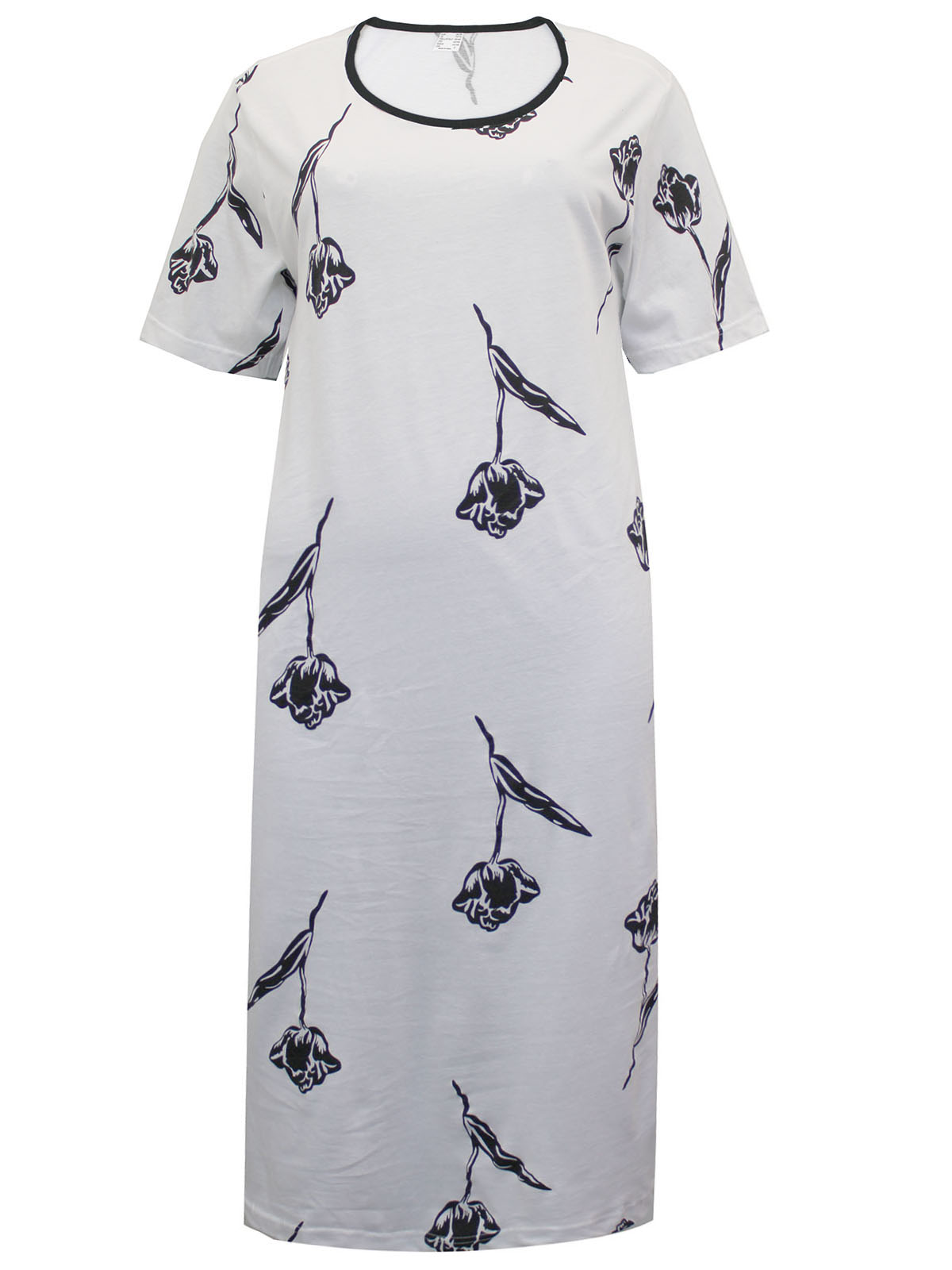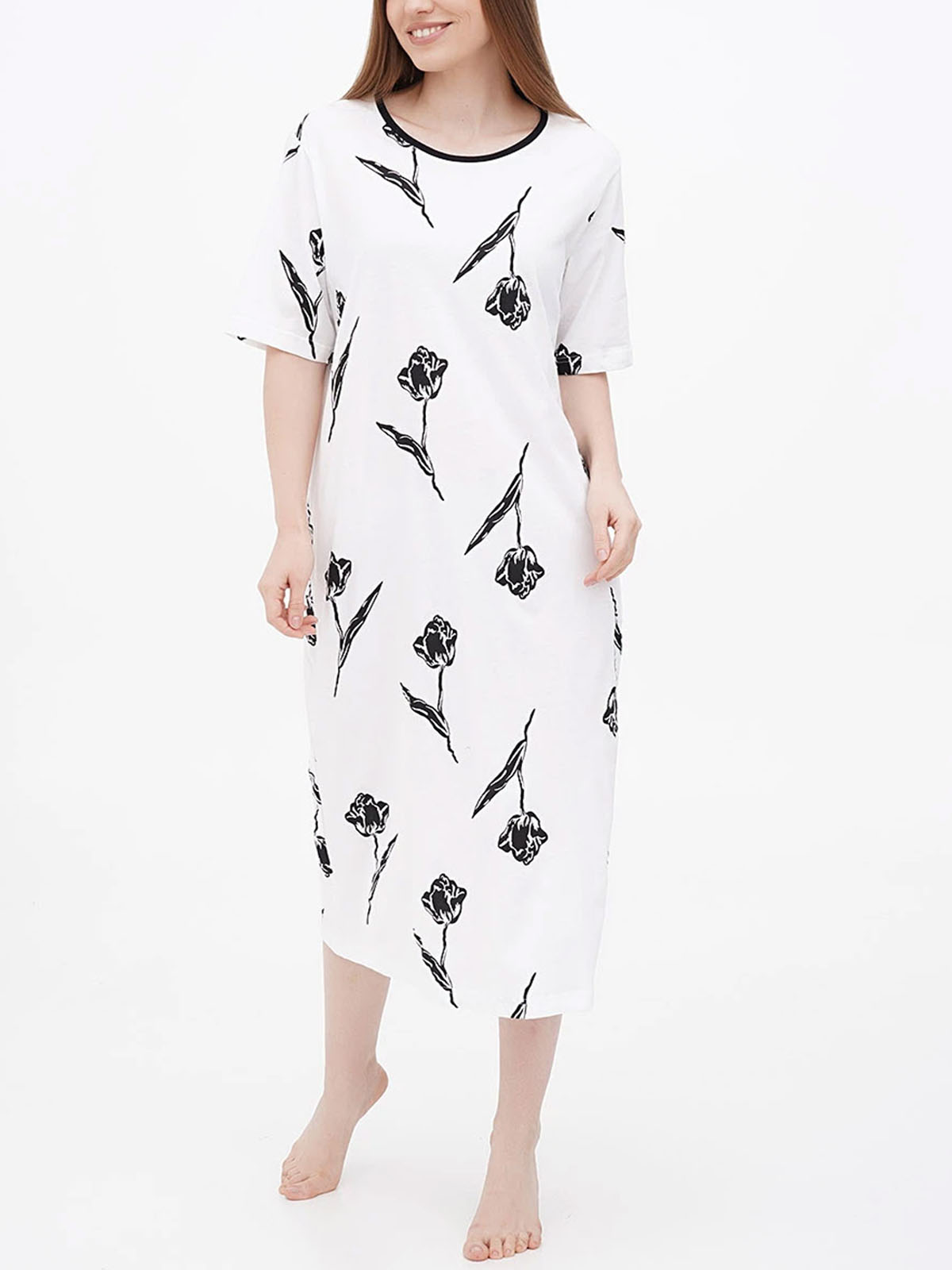 This soft cotton knit dress is the perfect lounge, nightdress. Scooped neckline, short sleeves and midi length of 48inches.