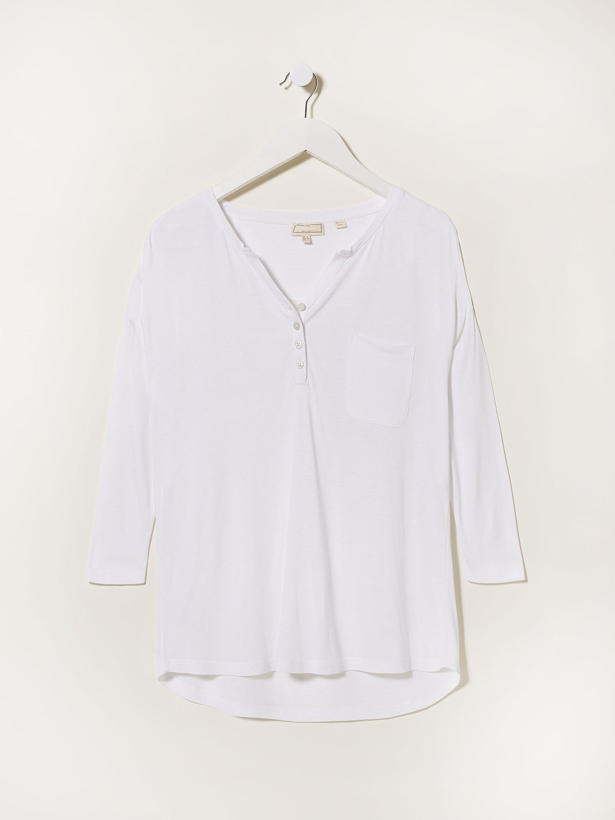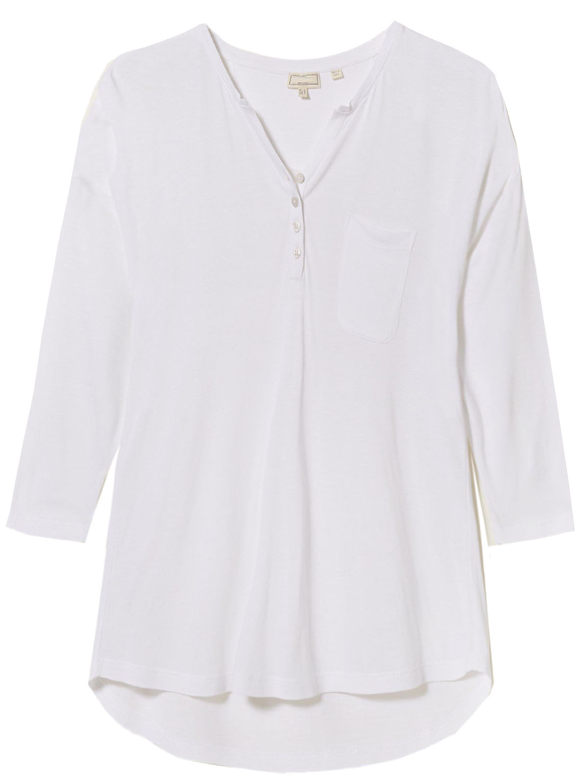 Made from lightweight material for cool, comfortable wear, this top is perfect for warm, sunny days. A versatile top with relaxed fit for a simple silhouette, it features a flattering notched neckline,3/4 length, chest pocket and a curved hem. Length 21in.