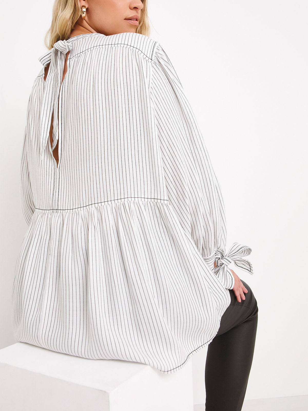 Striped Tie Cuff Smock Top