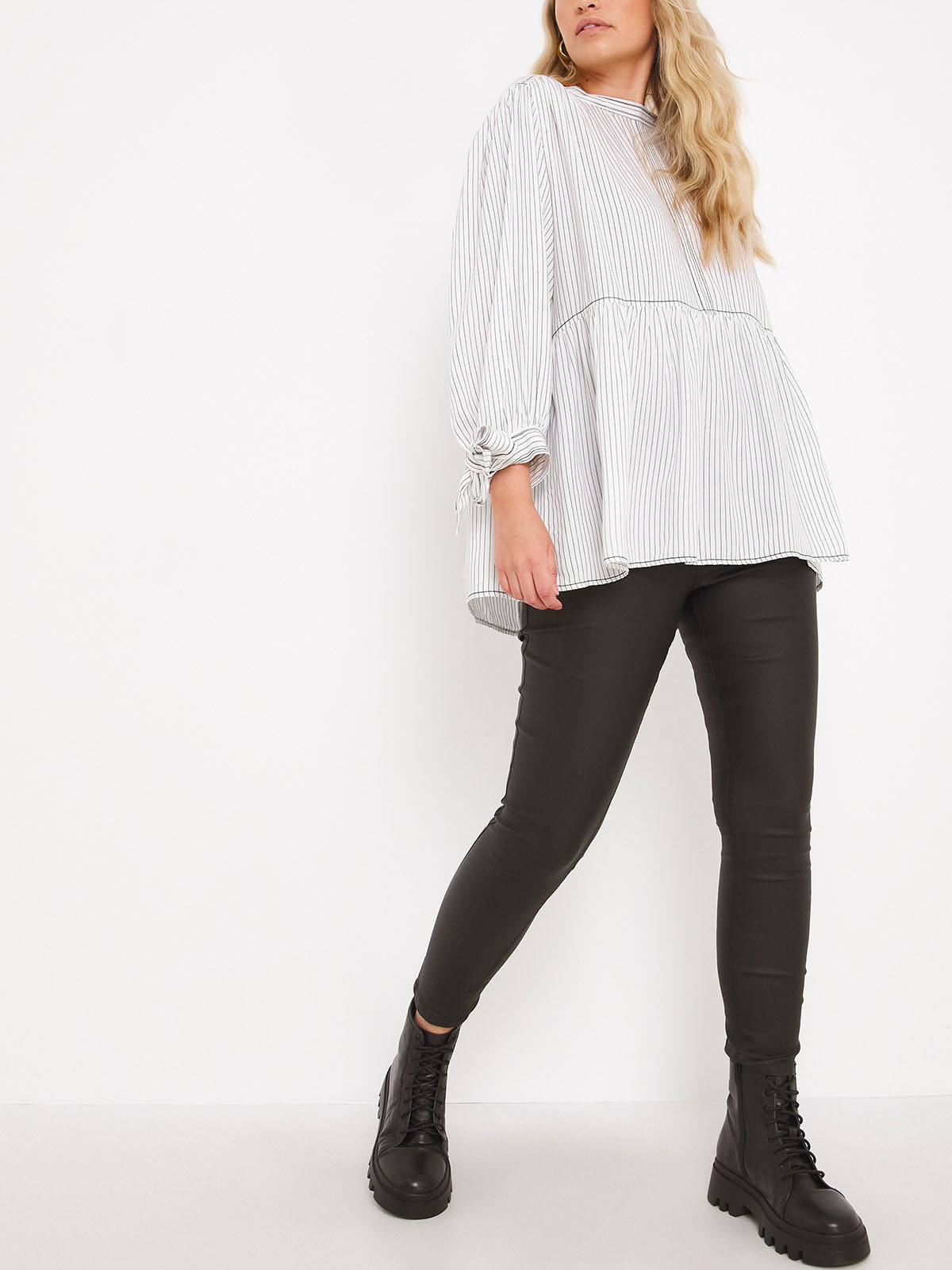 This super on-trend top is a must-have for your wardrobe this season. Featuring a flattering smock shape in a gorgeous stripe print, long sleeves and functional ties at the neckline and cuffs. Length 26in.