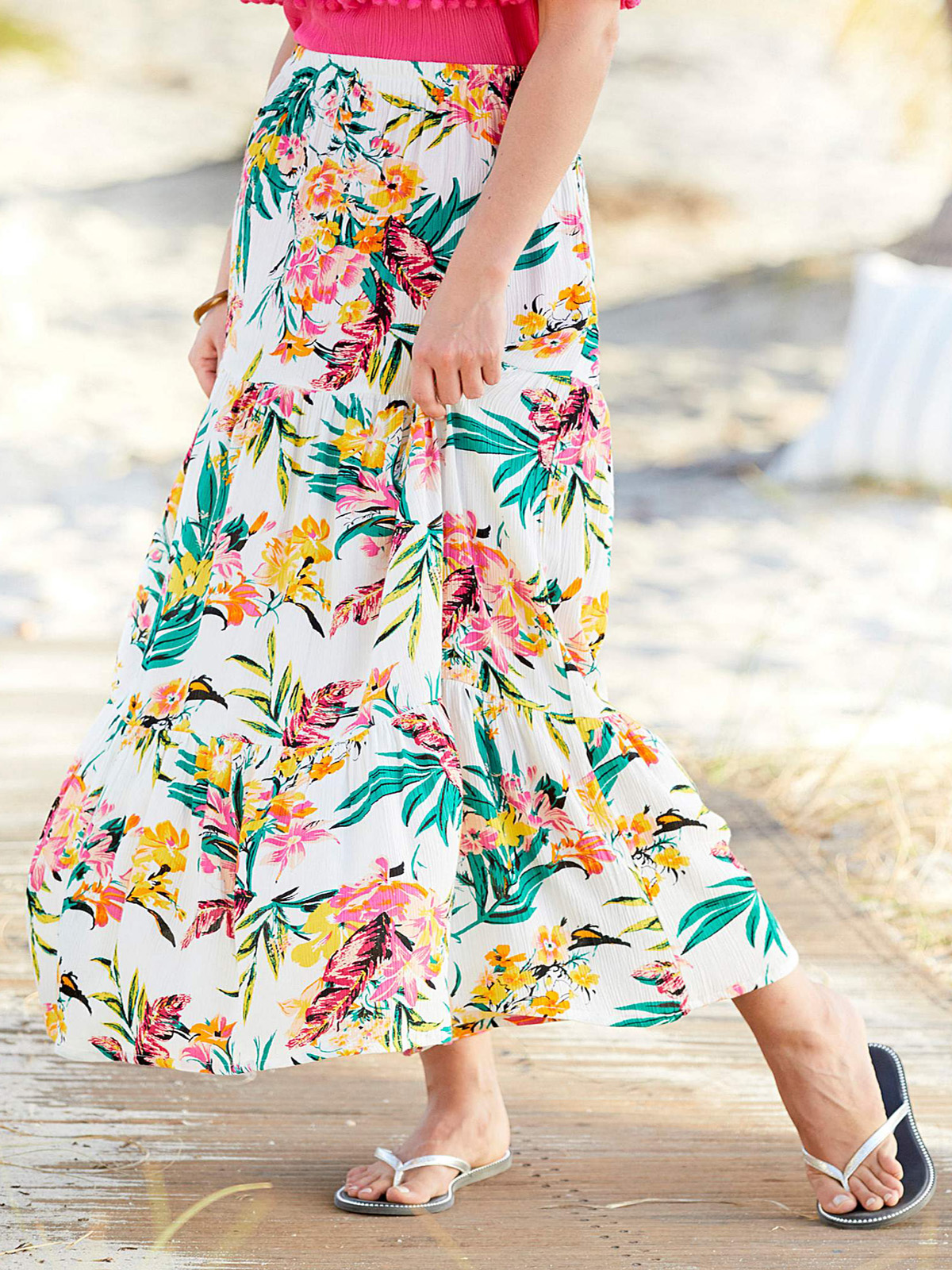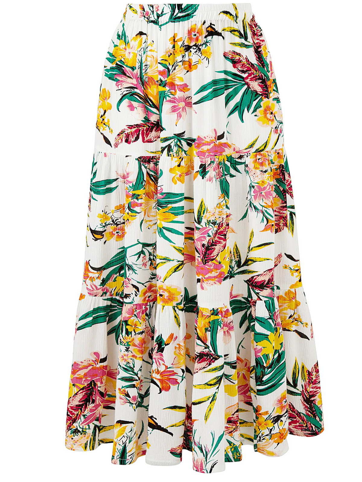 Tropical Print Crinkle Tiered Skirt