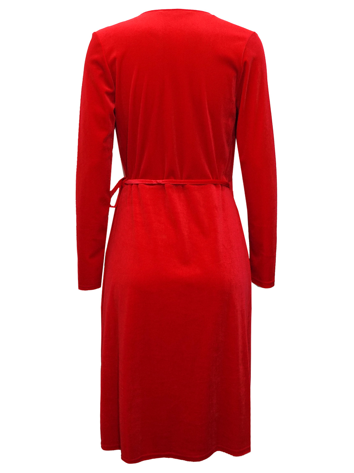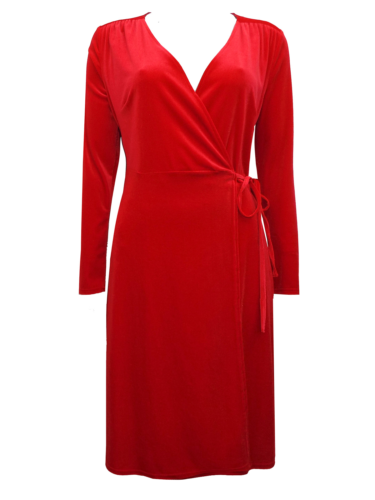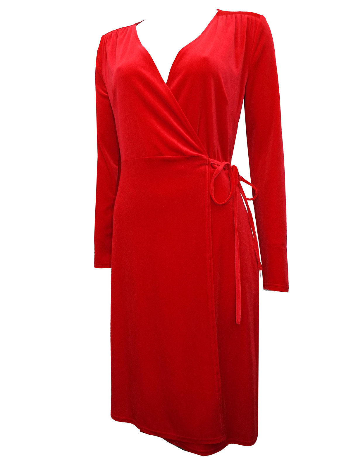 Take on the night in style with this velvet wrap midi dress. This is guaranteed to create a sexy look, complete with a V-neck, long sleeves and ties to the side. Unlined. Length 40in.